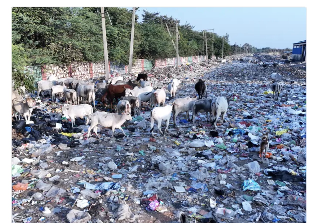 { गीला- सूखा कचरा अलग अलग नहीं उठाया जा रहा है।