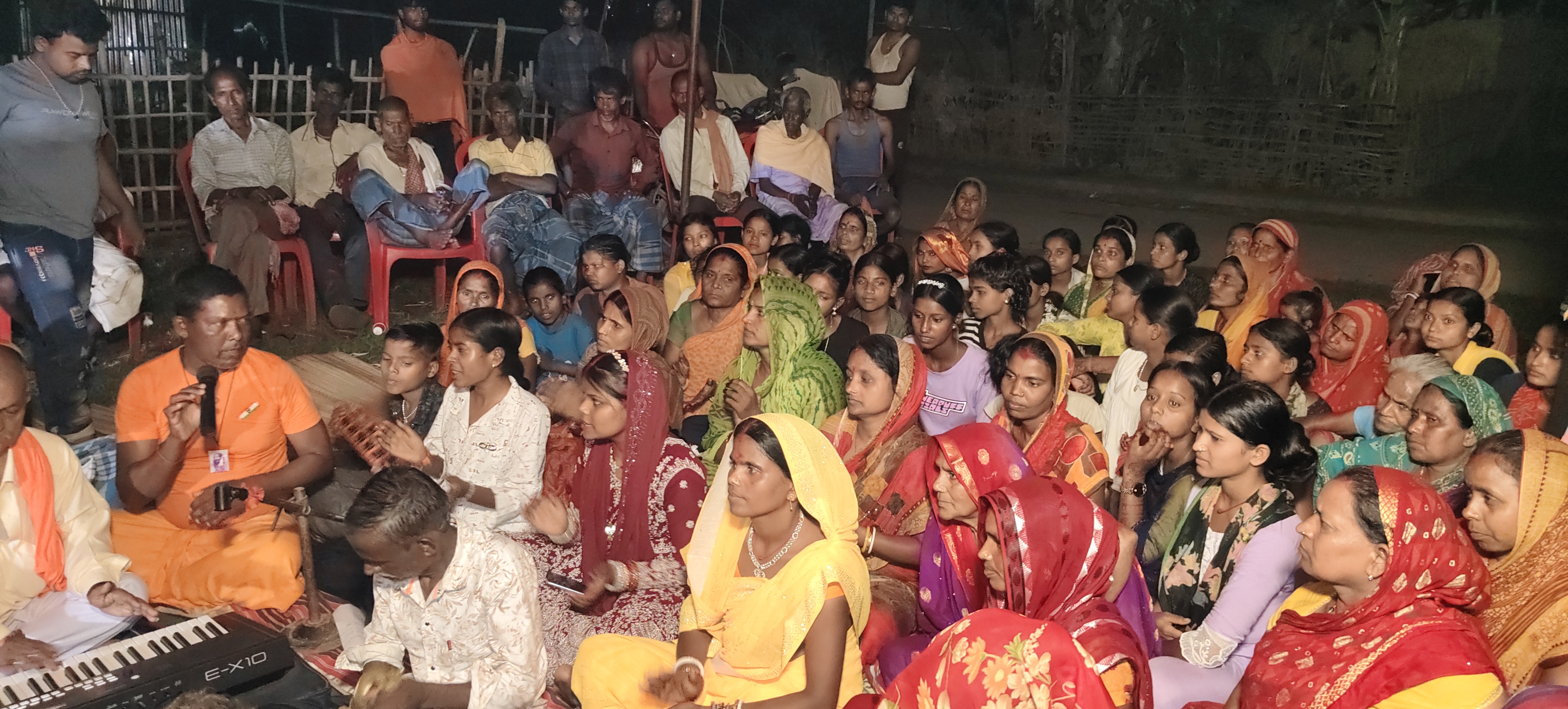 एक संवाददाता: जिला किशनगंज कोचाधामन प्रखंड अंतर्गत मजकुड़ी गांव में शिवलिंग स्थापित के पूर्व में भव्य कलश शोभा यात्रा निकाली गई। कई गांव की कुंवारी कन्या और महिलाओं वर्ती 108 कलश शोभा यात्रा शामिल हुए। शिवलिंग स्थल से कलश को माथे में लेकर रवाना हुई। अररिया किशनगंज दो जिले के संगम महल में यमुना गंगा तह जीत रतवा कंकाई नदी में जल कलश मैं भरकर वहां से निकल गया। चिकनी पोखरिया नांसिया, चार गाड़िया चौक भ्रमण करते हुए।मजकुड़ी गांव हवन यज्ञ स्थल पर कलश रखा गया है। इस मौके से वृंदावन से आए हुए महा आचार्य पंडित विधि पूर्वक पूजा अर्चना की गई वेद मंत्र द्वारा शिवलिंग को स्थापित की गई। दूर दराज से आए भक्ति जन लोगों ने शिवलिंग स्थापित देखने के लिए जन सैलाब उमड़ पड़ी। शुभ अवसर पर शिव शिष्य परिवार थ्री स्टार बुद्धि द्वारा शिव चर्चा किया गया। शुभारंभ जागरण गीत मेरे बाबा मेरे भोले ।खुशियां बरसा दे होले होले, तेरे दर पे दिल मेरा बोले खुशियां बरसा दे होले होले... भक्ति जागरण गीत सुनकर लोगों में खुशियों से तालिया की गोचर बजने लगी। गीत सुनकर आनंद की लुफ्त उठाएं, गुरु बहन अमृता के प्रस्तुति में।बाल ब्रह्मचारी श्री मनोज जी महाराज ने कहा देवों का देव महादेव तीनों लोक की गुरु है, तीन लोग ब्रह्मांड के गुरु है इसीलिए हम सब को महाकाल को गुरु बनाना चाहिए। तीन सूत्र का पालन करना चाहिए, पहला सूत्र में दया मांगना चाहिए,मैं आपका शीश हूं मेरे आप गुरु हैं मुझे शीश पर दया कर दीजिए। मैं महादेव को गुरु बना लिए हैं मेरा अच्छा हुआ है, आप भी गुरु बना लिए आपका भी अच्छा होगा। 108 बार ओम नमः शिवाय मन ही जाप करना चाहिए। नंदा मोहन दास ने बताया बिना गुरु से ज्ञान प्राप्त नहीं हो सकता है। अन्य वक्ता गुरु के बताइए मार्ग पर चलेंगे तभी तो ईश्वर प्राप्त होंगे। एकमात्र उपाय है ध्यान युक्ति साधन द्वारा ईश्वर को प्राप्त कर सकते हैं । मंच संचालक डॉ रमाकांत साह नाल वादक साहत दास ऑर्गन वादक विमल जगदीश गुरु भाई बाल देव,सतीश कुमार, हरिहर,अरविंद, सौरभ सम्राट, गुरु बहन डोली कुमारी हिरल हर्ष, रीना देवी,नगीना देवी, शांति देवी, सहित। शिव चर्चा का 👉आयोजन ठाकुर द्वारा किया गया। शिव चर्चा का सपना बनाने में सुरेश ठाकुर, अजय ठाकुर, धनंजय ठाकुर, शिपक ठाकुर ,दीपक ठाकुर ,अमित ठाकुर, पुना बैठा ,चंदन ठाकुर, सलटू ठाकुर अन्य ग्रामीणों सक्रिय देखेंगे।