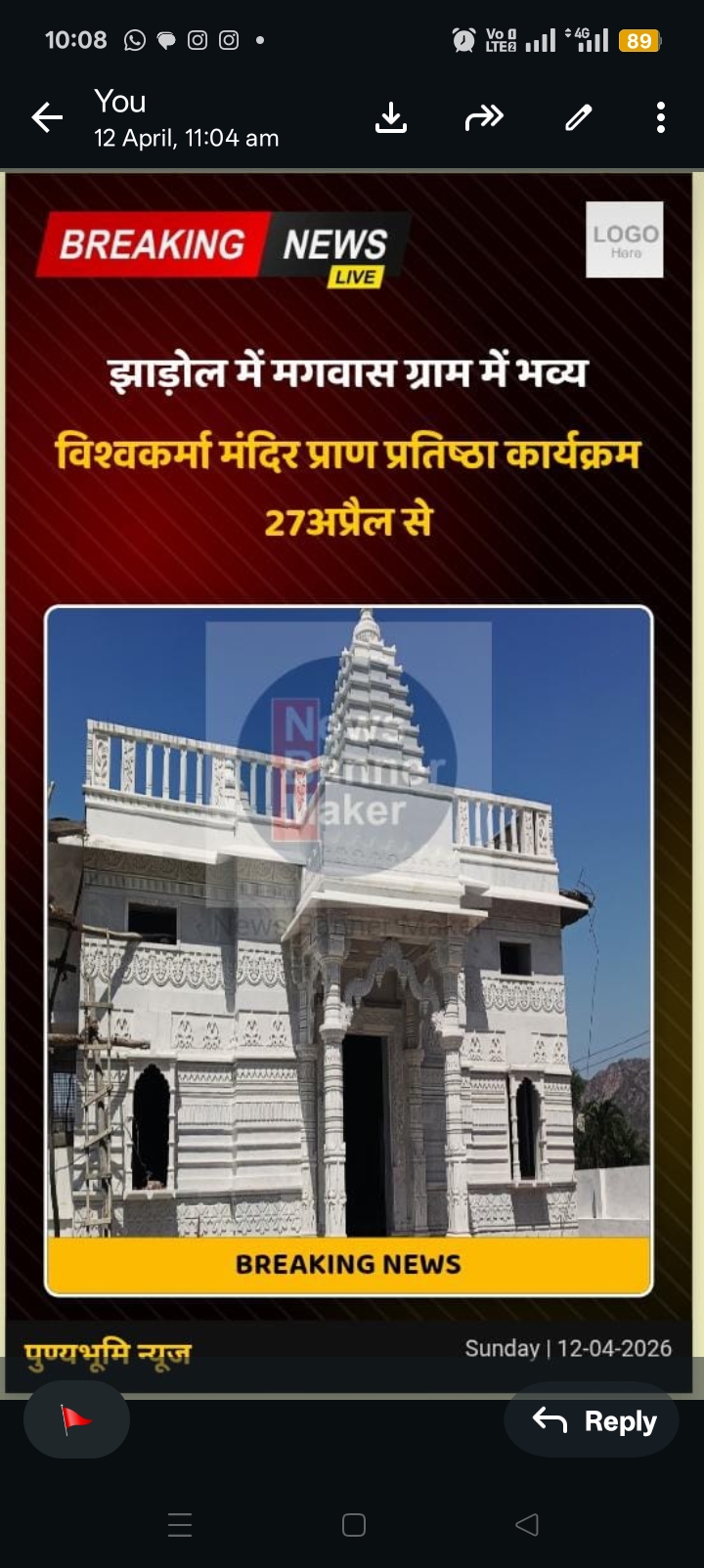 झाड़ोल विधानसभा के ग्राम मगवास में भगवान विश्वकर्मा मंदिर प्राण प्रतिष्ठा कार्यक्रम अवसर पर आयोजित कार्यक्रम में केबिनेट मंत्री बाबूलाल खराड़ी, राज्य मंत्री रामगोपाल सुथार विश्वकर्मा कौशल विकास बोर्ड भाजपा नेता भंवर सिंह पंवार समेत गणमान्य ओर स्थानीय ग्रामवासी रहेंगे मौजूद। यह जानकारी भंवर लाल सुथार ने दी
