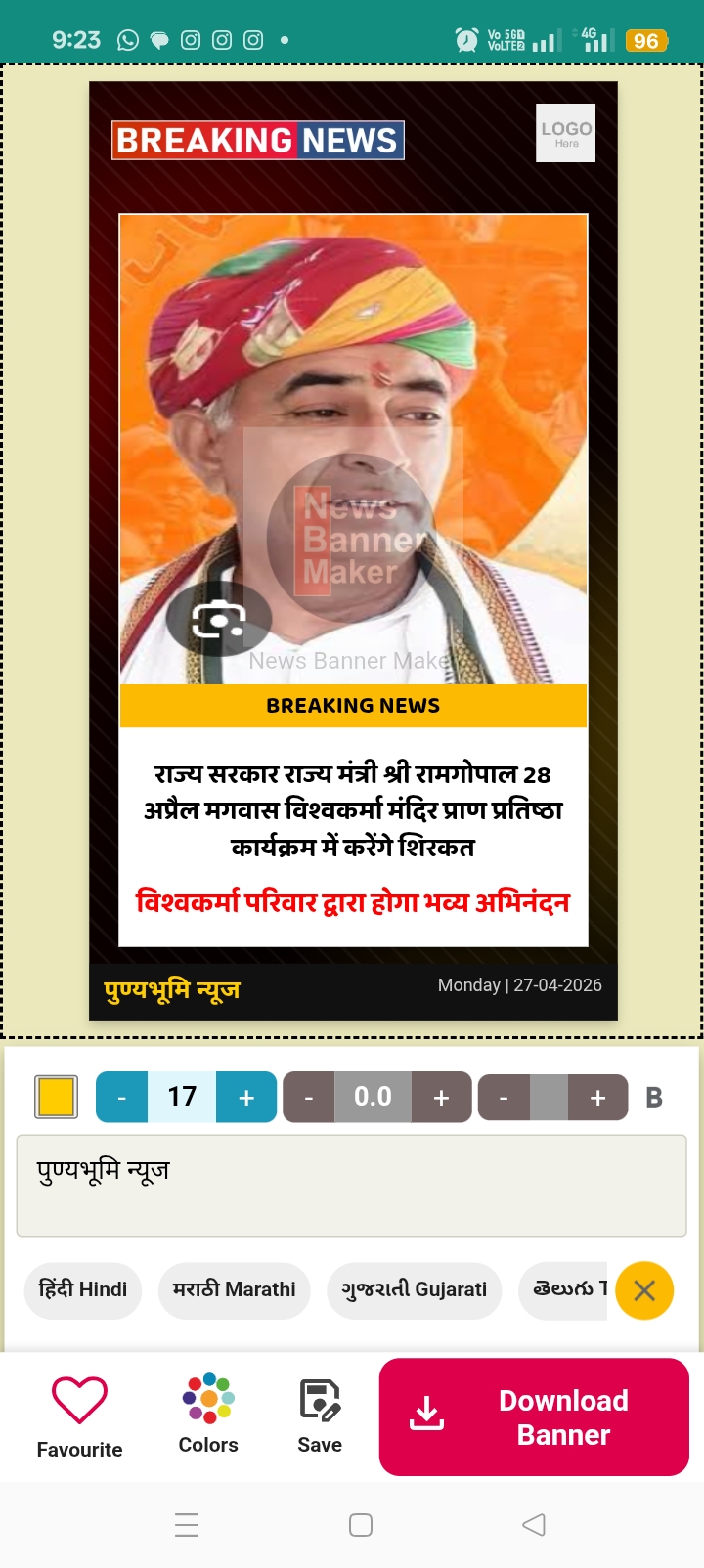 भगवान विश्वकर्मा मंदिर प्राण प्रतिष्ठा कार्यक्रम में 28 अप्रैल राजस्थान सरकार केबिनेट मंत्री बाबूलाल खराड़ी, राज्य मंत्री रामगोपाल सुथार रहेंगे मौजूद
