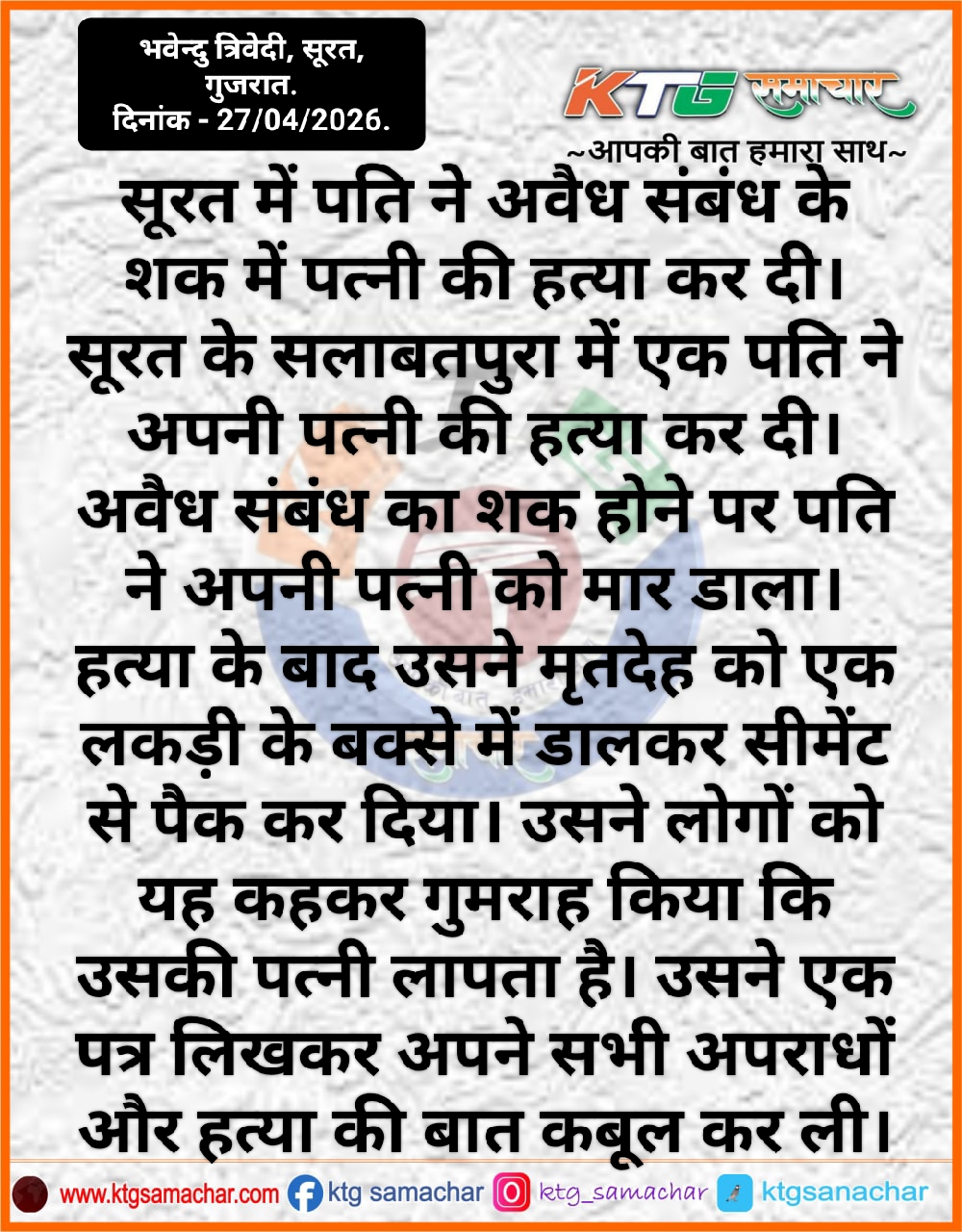 सूरत में पति ने अवैध संबंध के शक में पत्नी की हत्या कर दी।