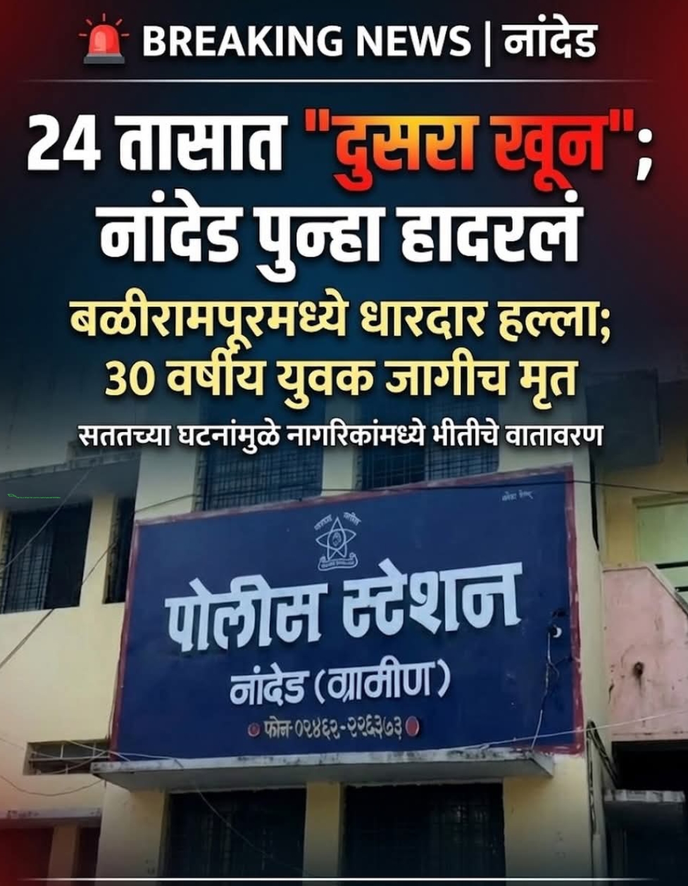 नांदेड मध्ये खुणाचे सत्र चालूच पोलीस प्रशा सनावर प्रश्न चिन्ह...