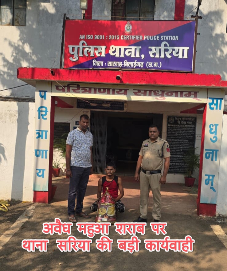 थाना सरिया पुलिस ने अवैध शराब बिक्री एवं परिवहन पर रोकथाम की दिशा में एक और सफलता अर्जित की है। पुलिस अधीक्षक आंजनेय वार्ष्णेय, अतिरिक्त पुलिस अधीक्षक निमीषा पाण्डेय एवं डीएसपी संतोषी ग्रेस के सतत निर्देश पर थाना प्रभारी प्रमोद यादव के नेतृत्व में सरिया पुलिस ने अवैध शराब बेचने वाले आरोपी को गिरफ्तार किया।