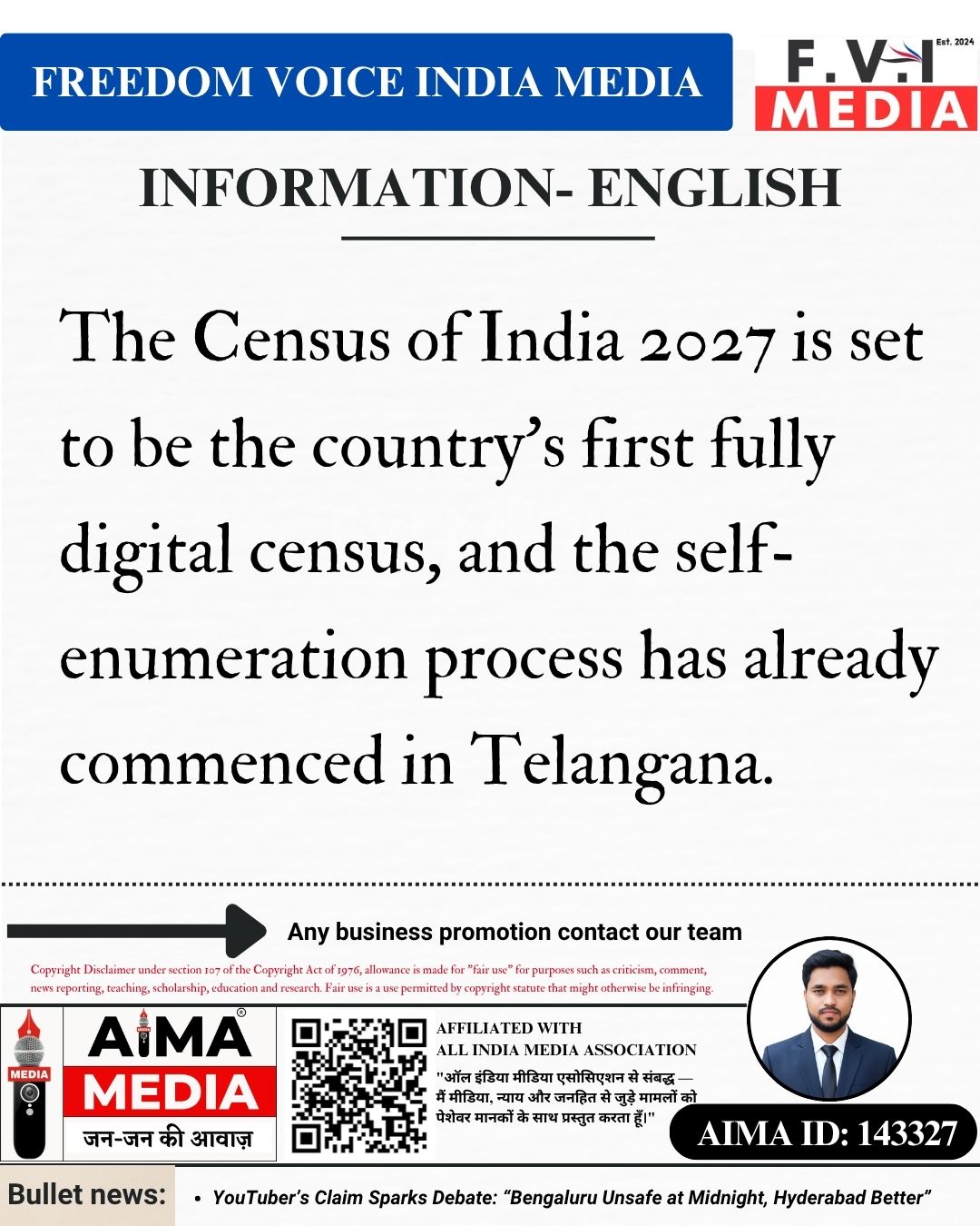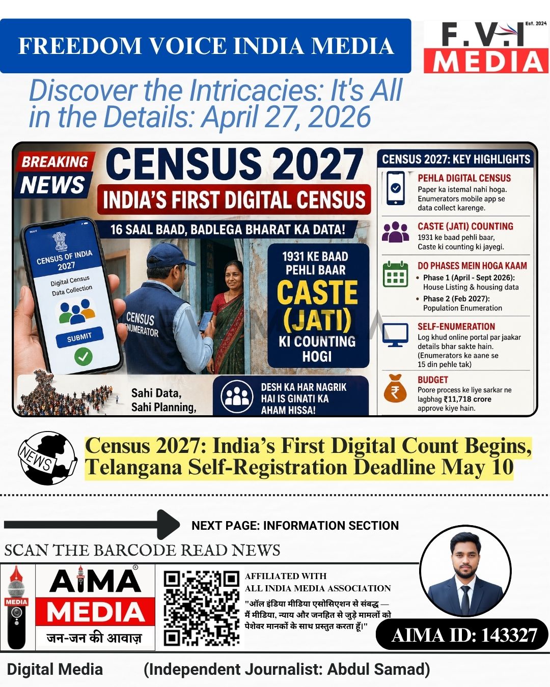Census 2027: India’s First Digital Count Begins, Telangana Self-Registration Deadline May 10