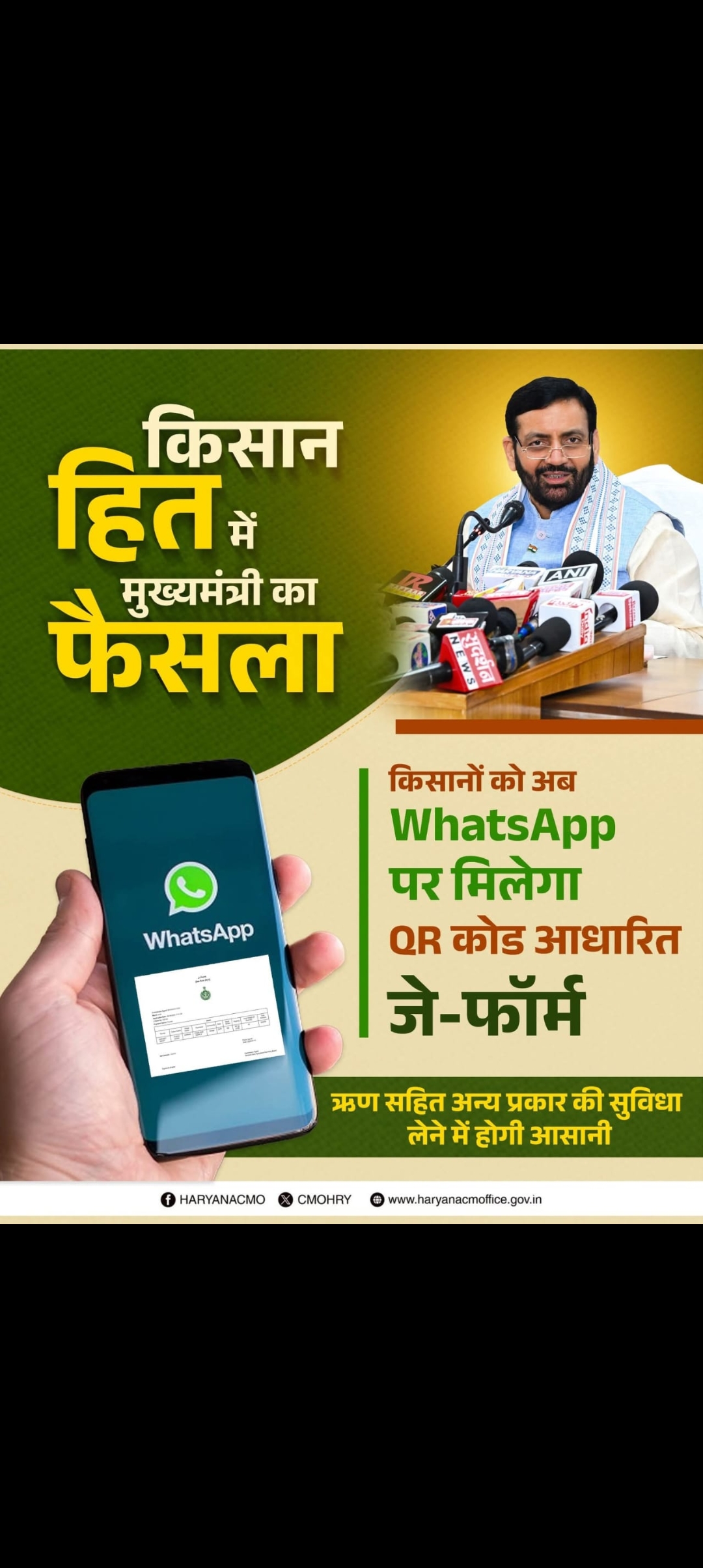 हरियाणा में अब किसानों को मिलेगा व्हाट्सअप पर क्यू आर कोड जे फार्म