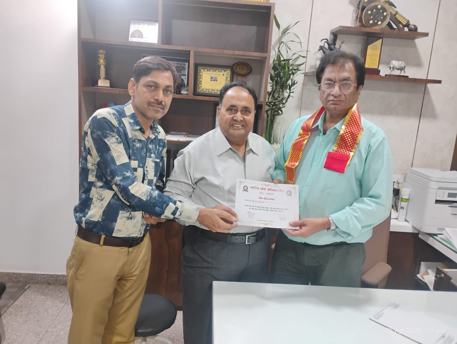 लोक अधिकार मंच के पदाधिकारियों ने डॉ. सरदाना की दीर्घकालीन सेवाओं और जनहित के प्रति उनके समर्पण की सराहना करते हुए उन्हें यह सम्मान पत्र भेंट किया।