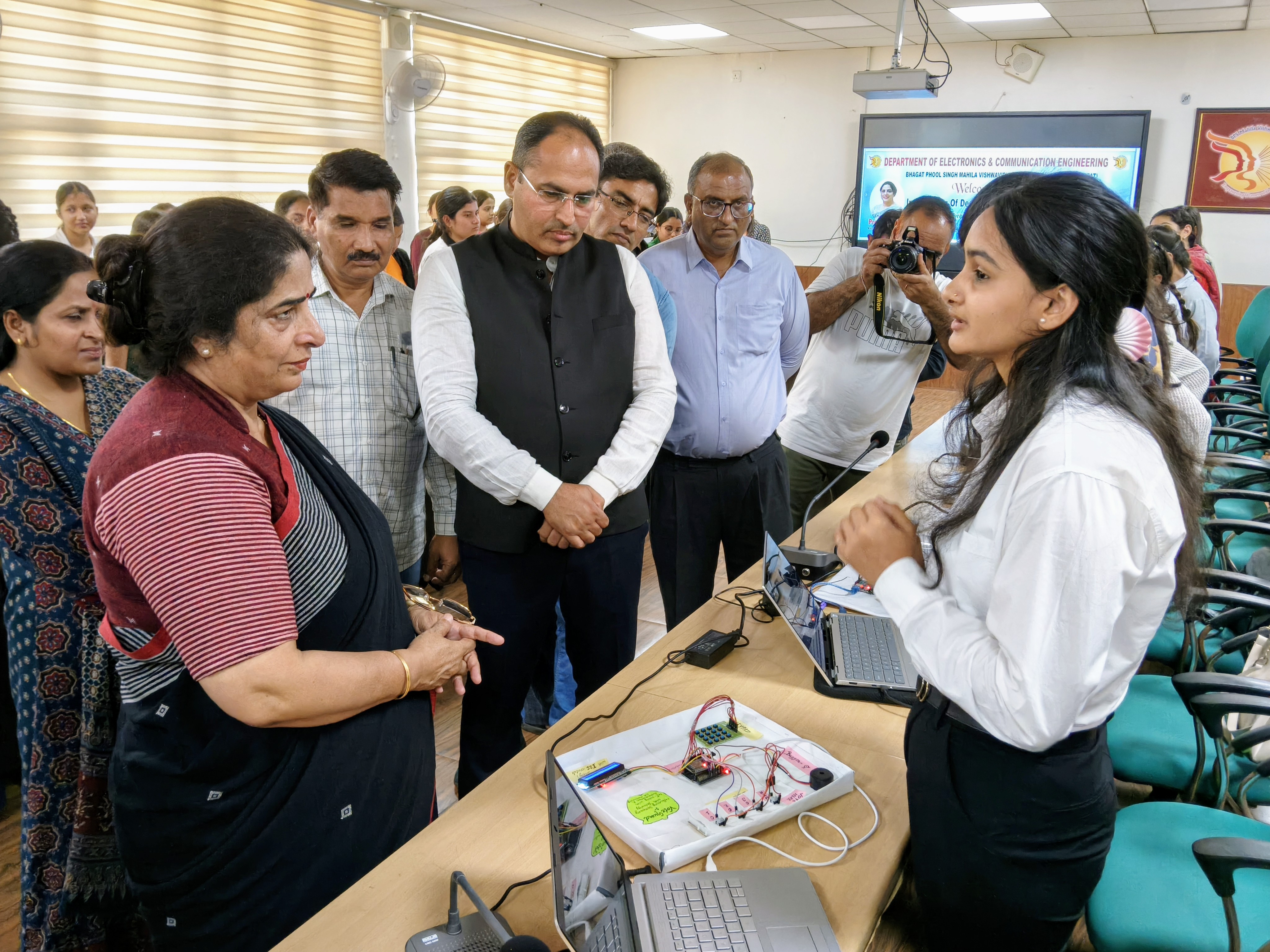 भगत फूल सिंह महिला विश्वविद्यालय, खानपुर कलां के इलेक्ट्रॉनिक्स एंड कम्युनिकेशन इंजीनियरिंग विभाग द्वारा “डिज़ाइन किए गए ड्रोन एवं प्रोजेक्ट्स प्रदर्शनी” का भव्य आयोजन किया गया। इस कार्यक्रम का उद्देश्य छात्राओं में नवाचार, तकनीकी दक्षता एवं शोध की भावना को प्रोत्साहित करना रहा। कार्यक्रम में विश्वविद्यालय के कुलपति प्रोफेसर सुदेश मुख्य अतिथि के रूप में उपस्थित रहे, जबकि कार्यक्रम की अध्यक्षता विभागाध्यक्ष प्रोफेसर संदीप दहिया ने की।