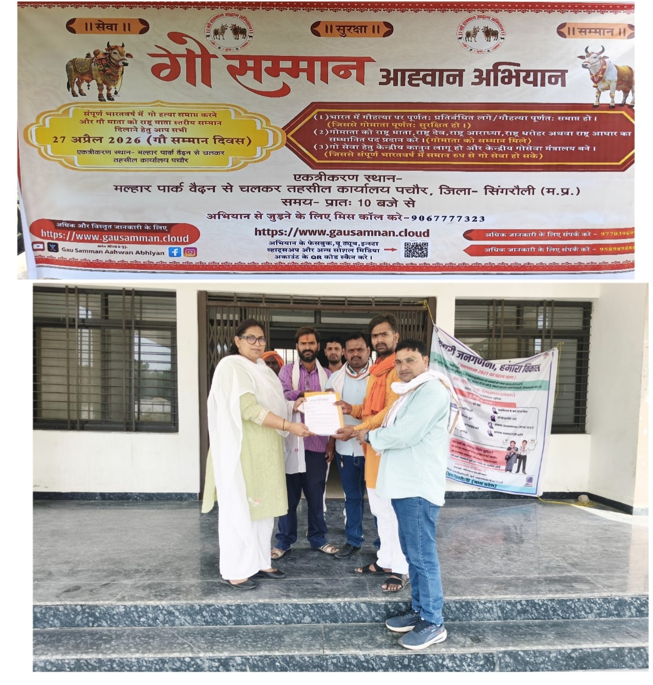 सिंगरौली: गो सम्मान आह्वान अभियान 27 अप्रैल 2026 को गौ सम्मान के तहद तहसील में सौंपा गया ज्ञापन पत्र।