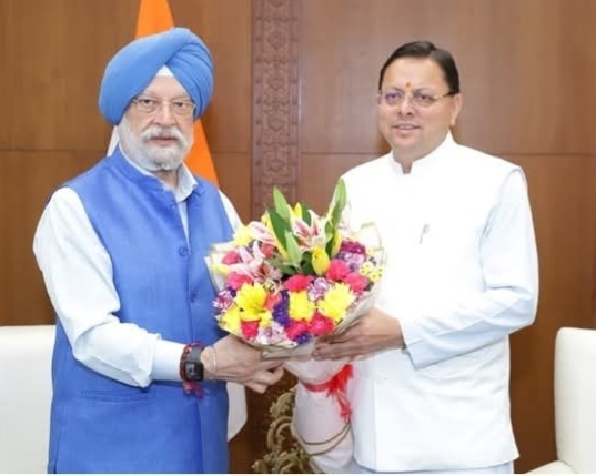 धामी ने केन्द्रीय मंत्री हरदीप सिंह पुरी से भेंट कर उत्तराखण्ड के विभिन्न महत्वपूर्ण विषयों पर विस्तृत चर्चा की