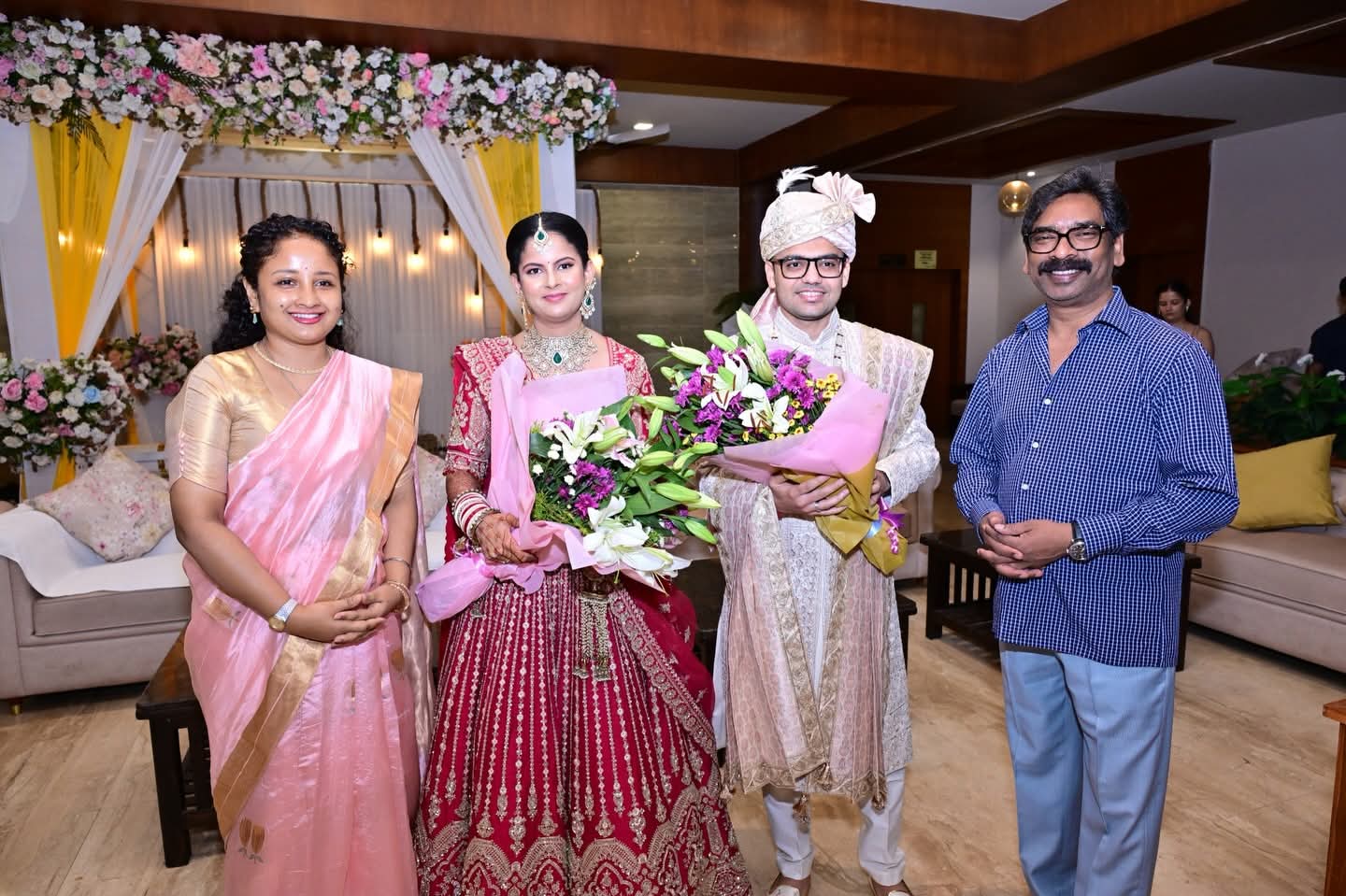 आज Hemant Soren जी के साथ रांची में आयोजित उपायुक्त, पूर्वी सिंहभूम श्री राजीव रंजन जी की सुपुत्री ऋचा के विवाह समारोह में शामिल होकर नवविवाहित जोड़े