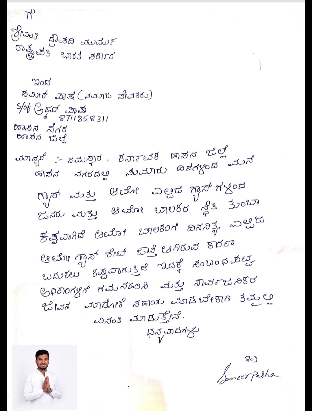 Sameer pasha Request letter to prisident of india