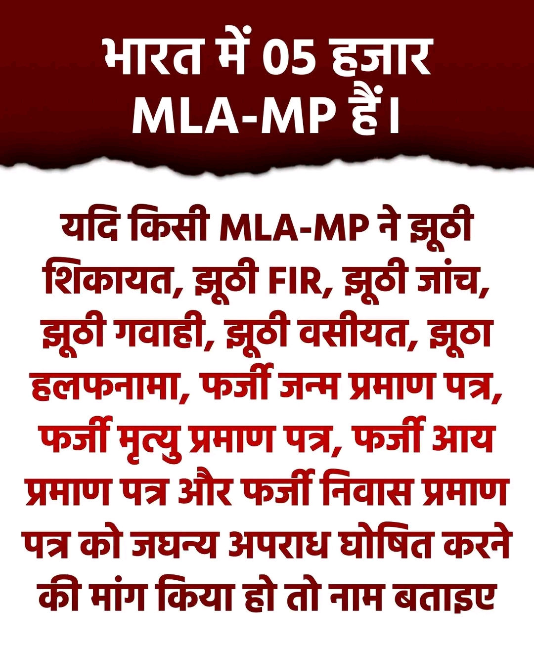 ALL INDIA MAY AGAR MP AAOR MLA KO MILA DIYAJAGA TO KUL5000 HO JAYGA PAR KISI K UPAR JHUTHA FIR AAJTAK NAHI HWA