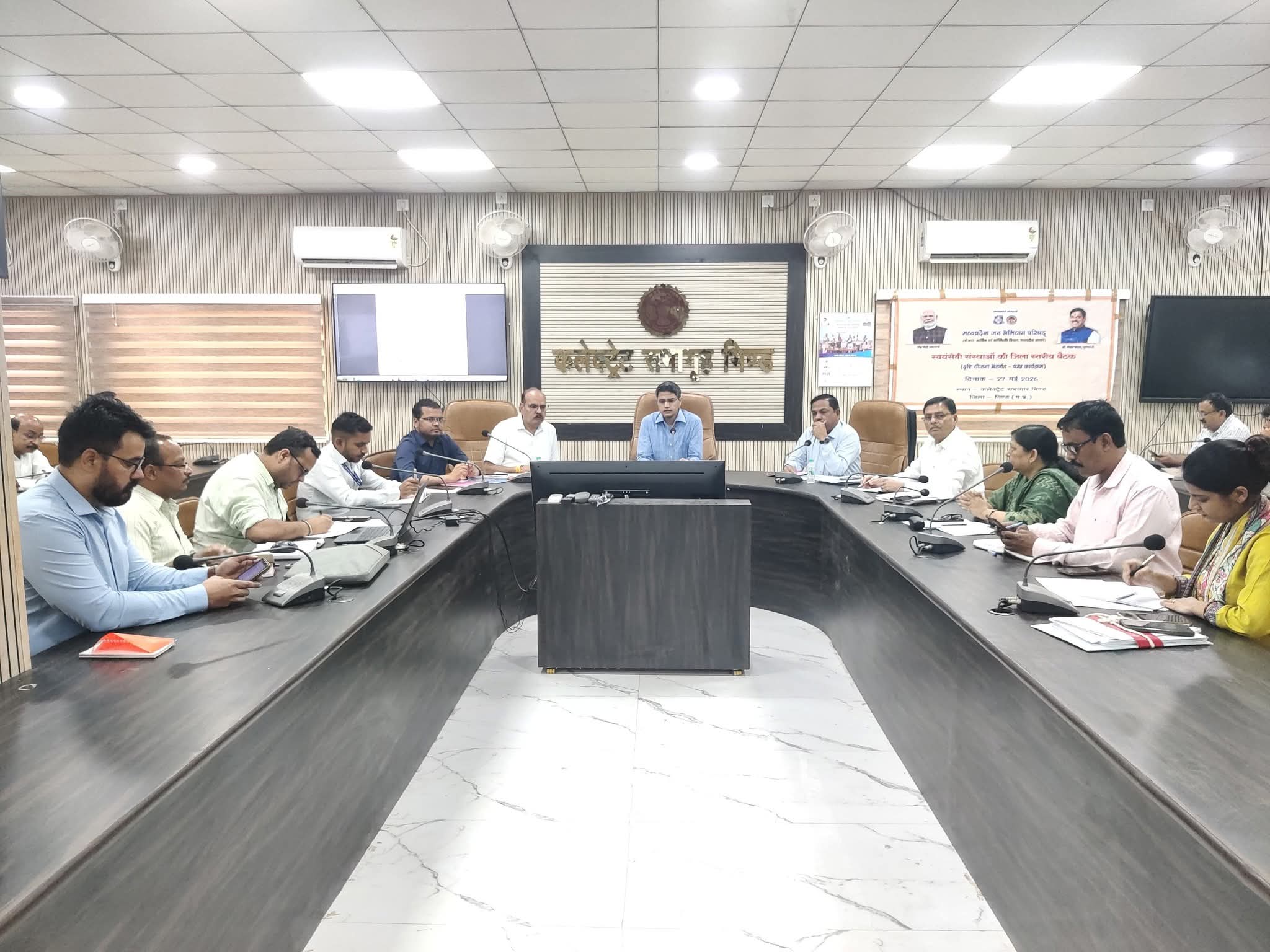 कलेक्टर भिण्ड की अध्यक्षता में समय सीमा पत्रों की साप्ताहिक समीक्षा बैठक कलेक्टर कार्यालय भिण्ड के सभागार में आयोजित की गई। बैठक में मुख्य कार्यपालन अधिकारी जिला पंचायत भिण्ड, अपर कलेक्टर, डिप्टी कलेक्टर सहित अन्य विभागों के जिला अधिकारी तथा कई अधिकारी वर्चुअल रूप से उपस्थित रहे।