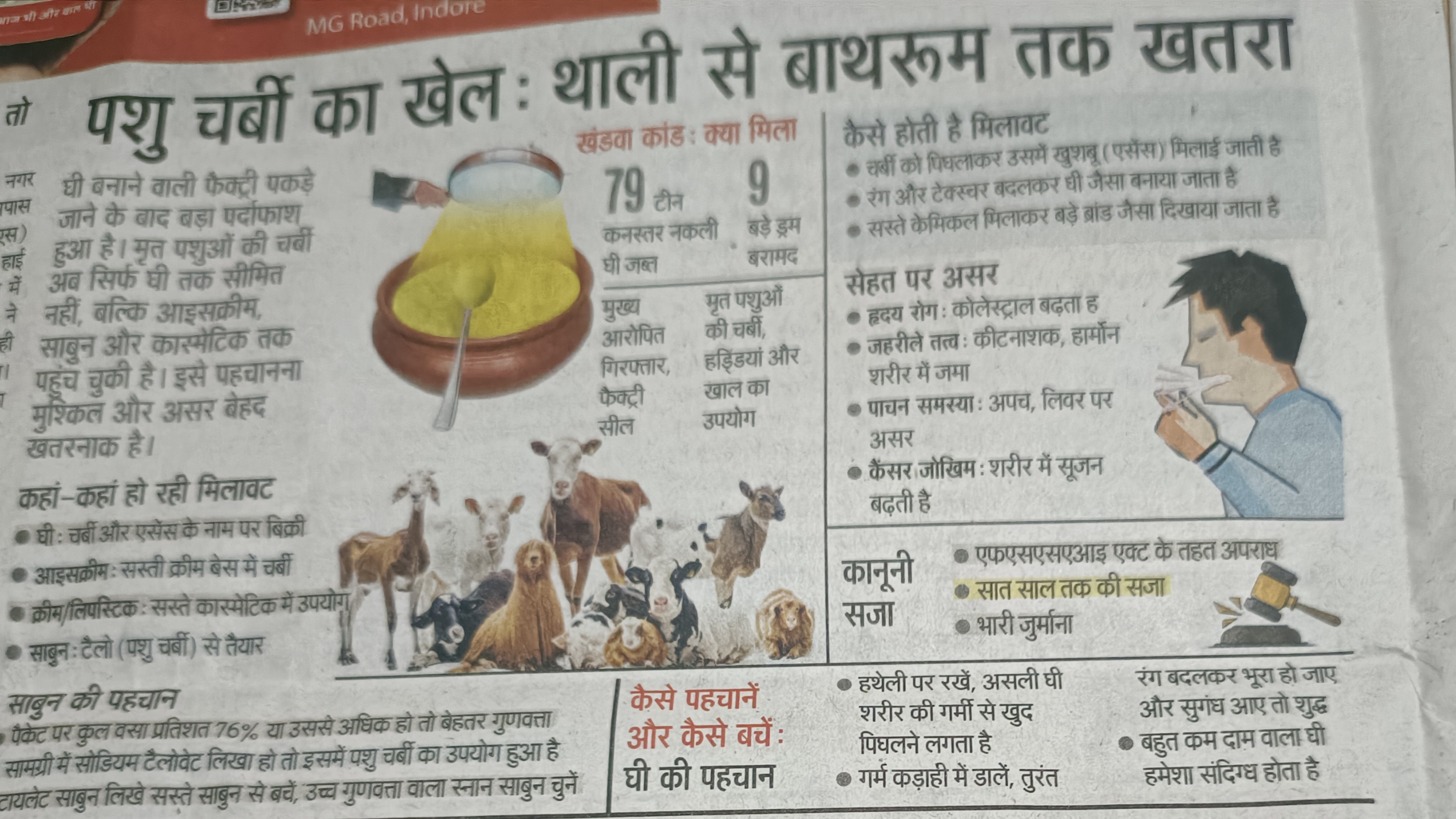 मृत पशु चर्बी से रहे सावधान । धडल्ले से मिलावट हो रही हैं ।