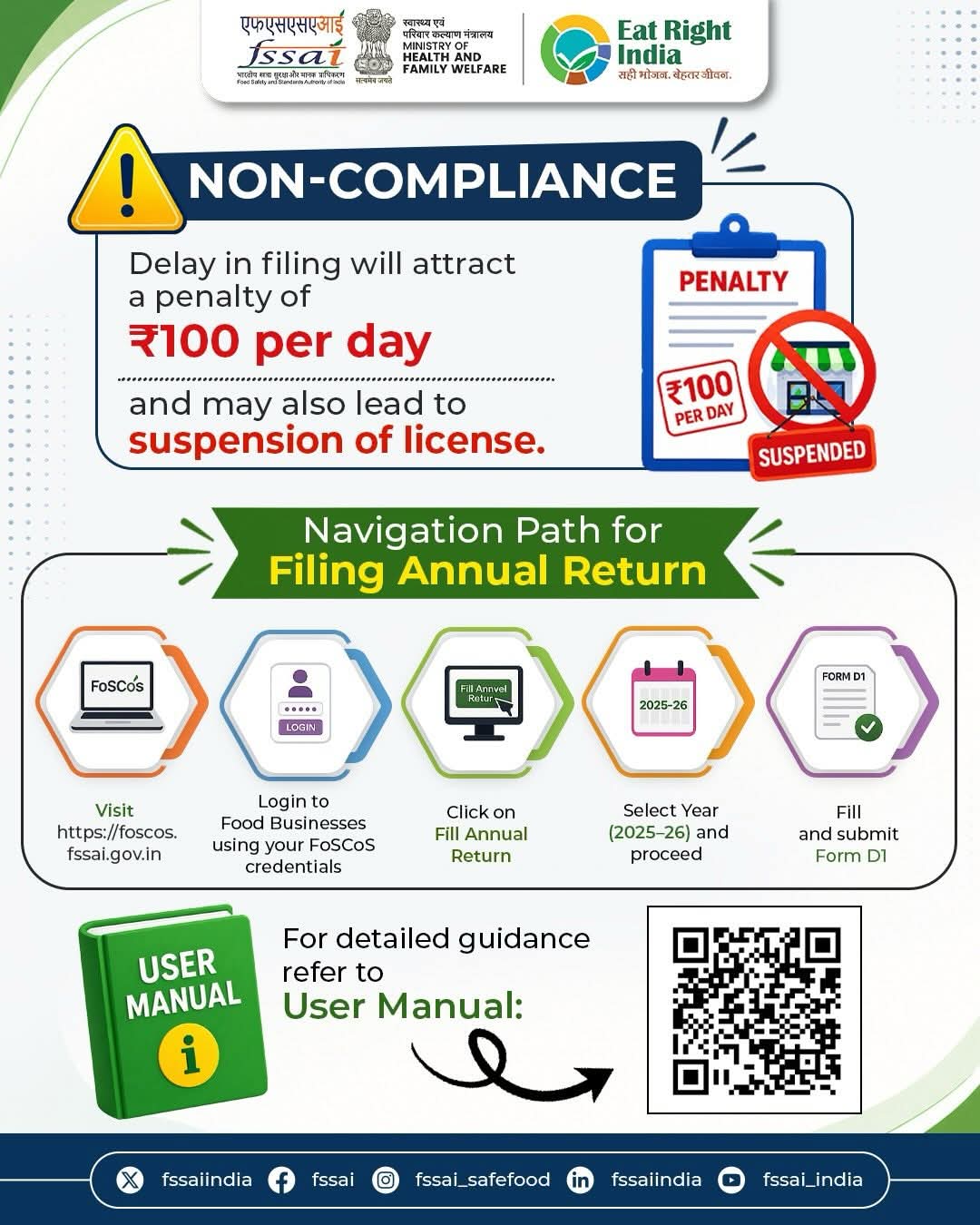 Delay in filing will attract a penalty of ₹100 per day and may lead to suspension of the license. Scan the QR for user manual.