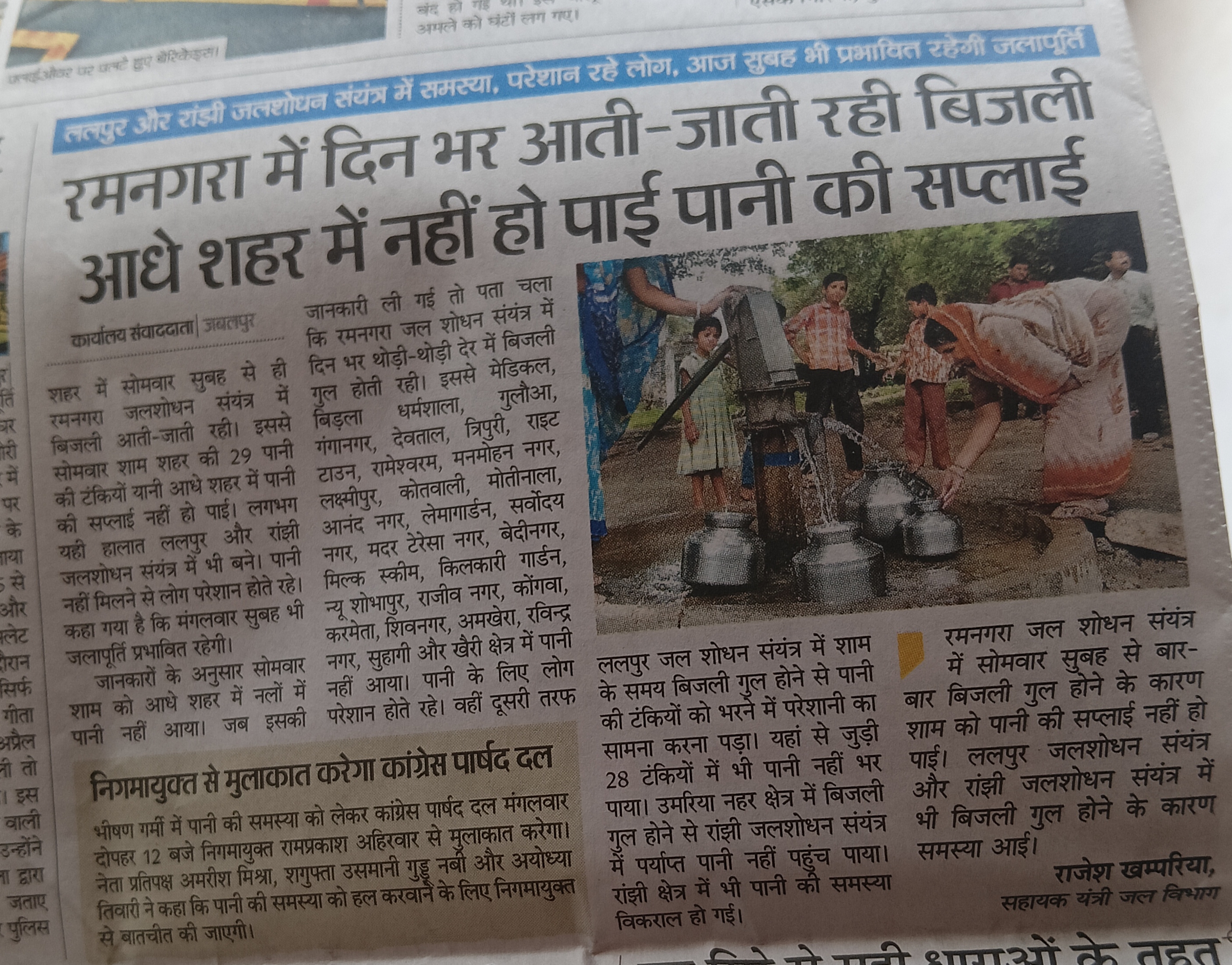 ललपुर और रांझी जलशोधन संयंत्र में समस्या परेशानी आ रही लोगों का आज सुबह भी प्रभावित रहे जल पूर्ति