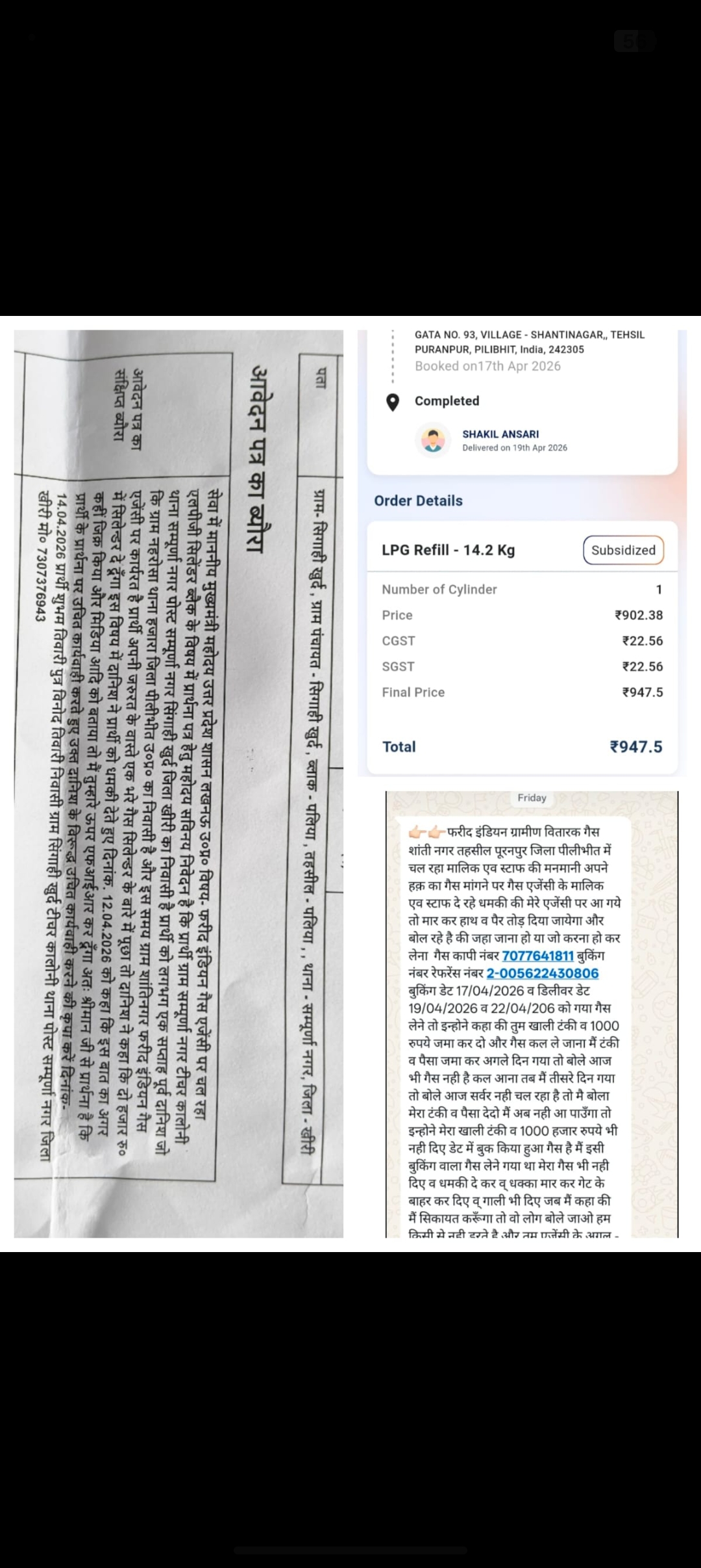 *ЁЯСЙрдкреАрдбрд╝рд┐рдд рдХрд╛ рдЖрд░реЛрдк рд╣реИ рдХрд┐ 22/04/2026 рдХреЛ рдЬрдм рд╡рд╣ рдмреБрдХ рдХрд┐рдпрд╛ рдЧрдпрд╛ рдЧреИрд╕ рд╕рд┐рд▓реЗрдВрдбрд░ рд▓реЗрдиреЗ рдПрдЬреЗрдВрд╕реА рдкрд╣реБрдВрдЪрд╛ рддреЛ рдЙрд╕рд╕реЗ рдЦрд╛рд▓реА рд╕рд┐рд▓реЗрдВрдбрд░ рдФрд░ тВ╣1000 рдЬрдорд╛ рдХрд░ рдЕрдЧрд▓реЗ рджрд┐рди рдЖрдиреЗ рдХреЛ рдХрд╣рд╛ рдЧрдпрд╛ред рдЕрдЧрд▓реЗ рджрд┐рди рдкрд╣реБрдВрдЪрдиреЗ рдкрд░ рдЧреИрд╕ рди рд╣реЛрдиреЗ рдХреА рдмрд╛рдд рдХрд╣реА рдЧрдИ, рдлрд┐рд░ рддреАрд╕рд░реЗ рджрд┐рди рд╕рд░реНрд╡рд░ рдЦрд░рд╛рдм рд╣реЛрдиреЗ рдХрд╛ рдмрд╣рд╛рдирд╛ рдмрдирд╛рдпрд╛ рдЧрдпрд╛ред*