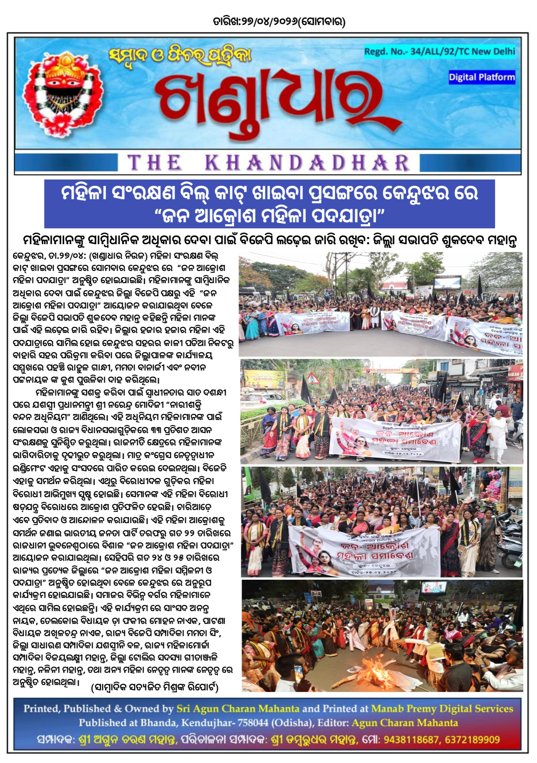 ଖଣ୍ଡାଧାର ନିଉଜ- ସାମ୍ବାଦିକ ସତ୍ୟଜିତ ମିଶ୍ରଙ୍କ ରିପୋର୍ଟ।