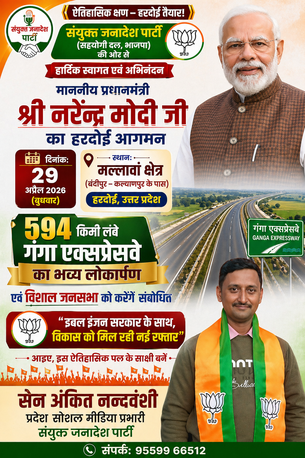 हरदोई में ऐतिहासिक दिन! 29 अप्रैल 2026 माननीय प्रधानमंत्री Narendra Modi जी का भव्य आगमन मल्लावां क्षेत्र (बंदीपुर – कल्याणपुर)