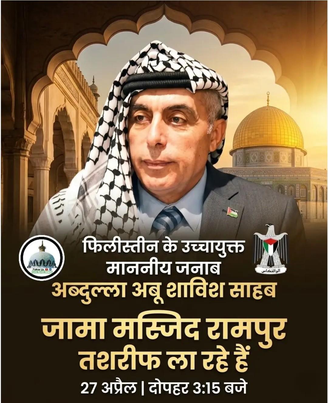 Nawab Kazim Ali Khan of Rampur host the Palestine Ambassador.. he will also pay a visit to Jama Masjid, of Rampur.