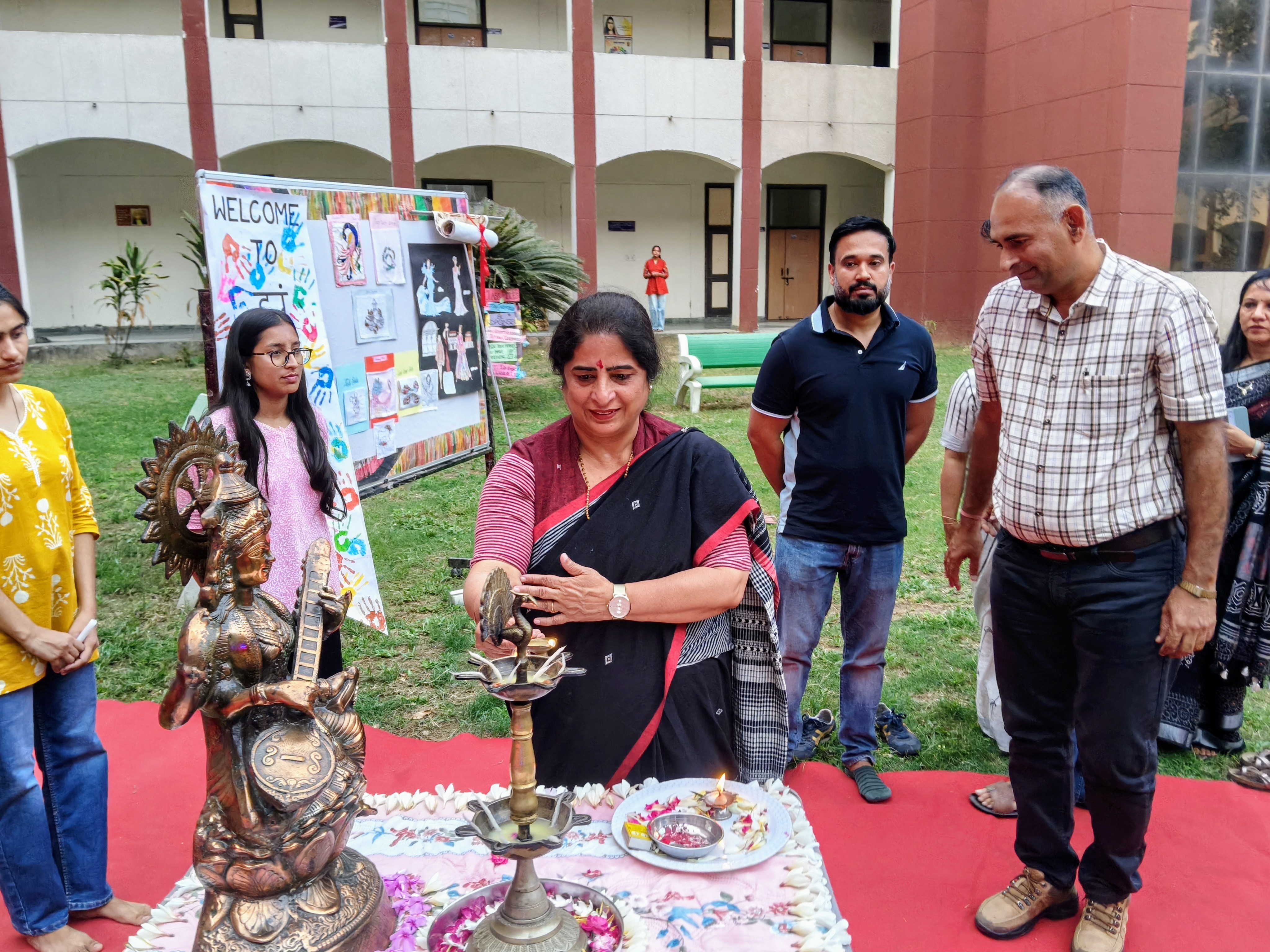फोटो कैप्शन :- 01 दीप प्रज्वलन कर कार्यक्रम का शुभारम्भ करते कुलपति प्रो सुदेश। 02 झंकार कार्यक्रम को औपचारिक रूप से लांच करते कुलपति प्रो सुदेश। 03 अपनी प्रस्तुति देती छात्राएं।