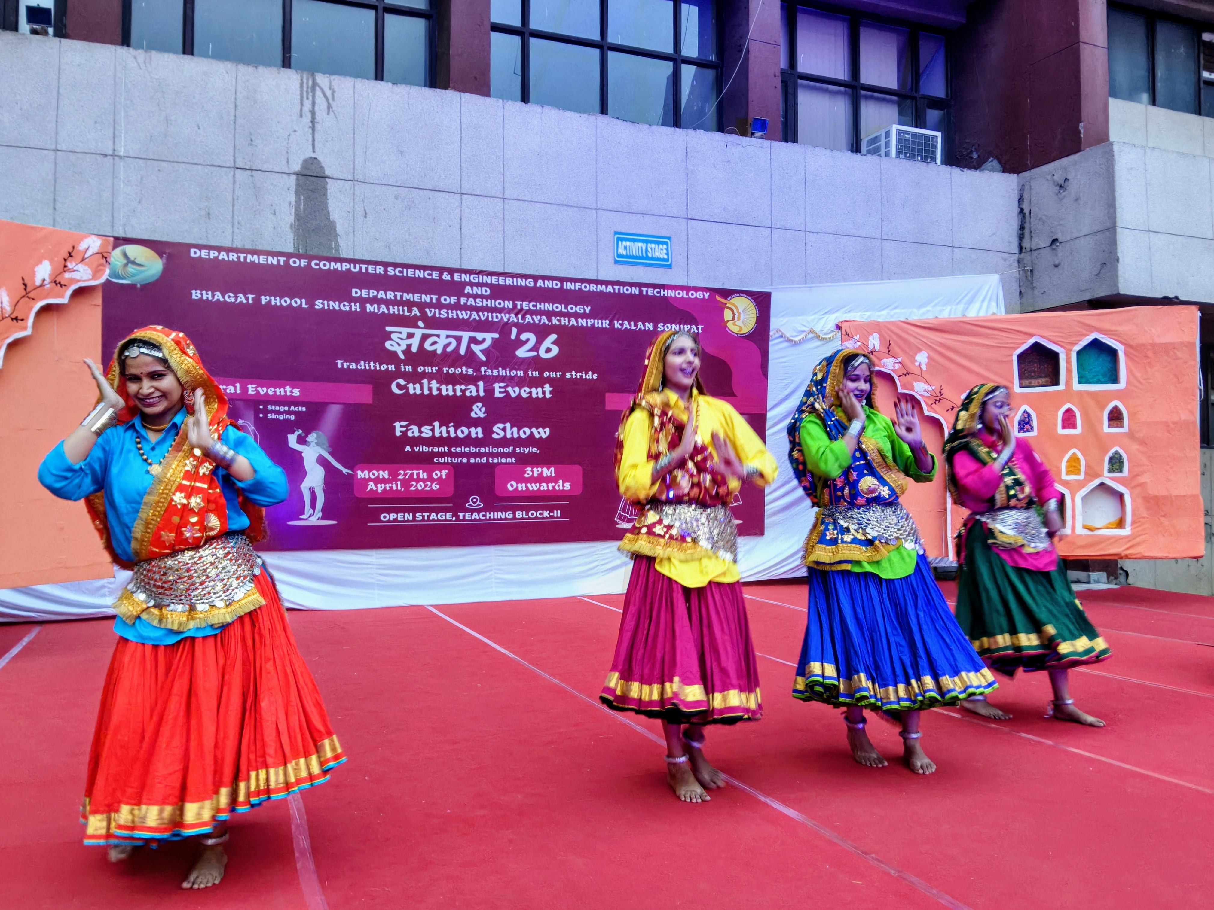 भगत फूल सिंह महिला विश्वविद्यालय, खानपुर कलां के फैशन टेक्नोलॉजी विभाग द्वारा “झंकार” फैशन शो का भव्य एवं आकर्षक आयोजन किया गया। इस कार्यक्रम में फैशन और संस्कृति का अद्भुत संगम देखने को मिला, जहां छात्राओं ने अपनी रचनात्मकता, डिजाइनिंग कौशल और सांस्कृतिक समझ का शानदार प्रदर्शन किया।यह आयोजन फैशन टेक्नोलॉजी विभाग व कंप्यूटर साइंस इंजीनियरिंग विभाग संयुक्त तत्वावधान में आयोजित किया गया । कार्यक्रम में छात्राओं ने उत्साहपूर्वक भाग लेते हुए विभिन्न थीम पर आधारित फैशन शो प्रस्तुत किए, जिनमें पारंपरिक, फ्यूजन और आधुनिक परिधानों का आकर्षक प्रदर्शन किया गया। रैंप वॉक के दौरान छात्राओं के आत्मविश्वास और प्रस्तुति शैली ने सभी दर्शकों को प्रभावित किया।कार्यक्रम की अध्यक्षता कंप्यूटर साइंस इंजीनियरिंग विभाग के अध्यक्ष प्रो अजित सिंह व फैशन टेक्नोलॉजी विभाग के अध्यक्ष डॉ आशीष हुडा ने की। कार्यक्रम की मुख्य अतिथि विश्वविद्यालय की कुलपति प्रोफेसर सुदेश रहीं। उन्होंने अपने संबोधन में छात्राओं की प्रतिभा की सराहना करते हुए कहा कि इस प्रकार के आयोजन न केवल रचनात्मकता को बढ़ावा देते हैं, बल्कि हमारी समृद्ध सांस्कृतिक विरासत को भी सहेजने का अवसर प्रदान करते हैं। उन्होंने छात्राओं को अपनी जड़ों से जुड़े रहने और भारतीय संस्कृति को आगे बढ़ाने के लिए प्रेरित किया।कार्यक्रम के अंतर्गत विभिन्न सांस्कृतिक प्रस्तुतियां भी आयोजित की गईं, जिनमें नृत्य, संगीत और अन्य रंगारंग कार्यक्रम शामिल रहे। इन प्रस्तुतियों ने कार्यक्रम में चार चांद लगा दिए और दर्शकों का भरपूर मनोरंजन किया।डॉ आशीष हुडा ने कहा कि कार्यक्रम का सफल संचालन और आयोजन सभी विभागों के सामूहिक प्रयासों का परिणाम रहा। “झंकार” के माध्यम से छात्राओं को अपनी प्रतिभा प्रदर्शित करने के साथ-साथ आत्मविश्वास और नेतृत्व क्षमता विकसित करने का भी अवसर प्राप्त हुआ।इस अवसर पर विश्वविद्यालय के विभिन्न विभागों के शिक्षकगण, अधिकारी एवं बड़ी संख्या में छात्राएं उपस्थित रहीं।
