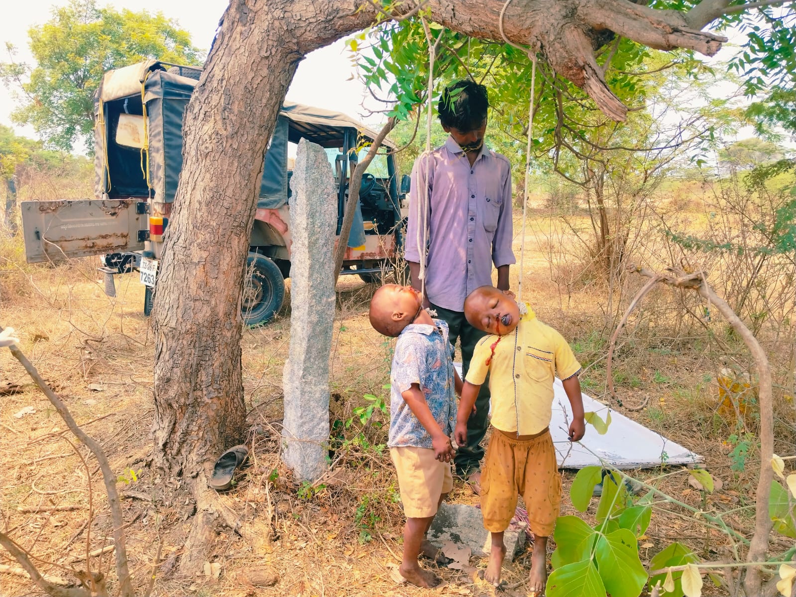 తొర్రూరులో మండల కేంద్రంలోని వ్యవసాయ మార్కెట్ కమిటీ సమీపంలో కుటుంబ కలహాలతో ఇద్దరు పిల్లలకు ఊరి వేసి తండ్రి ఉరివేసుకుని ఆత్మహత్య