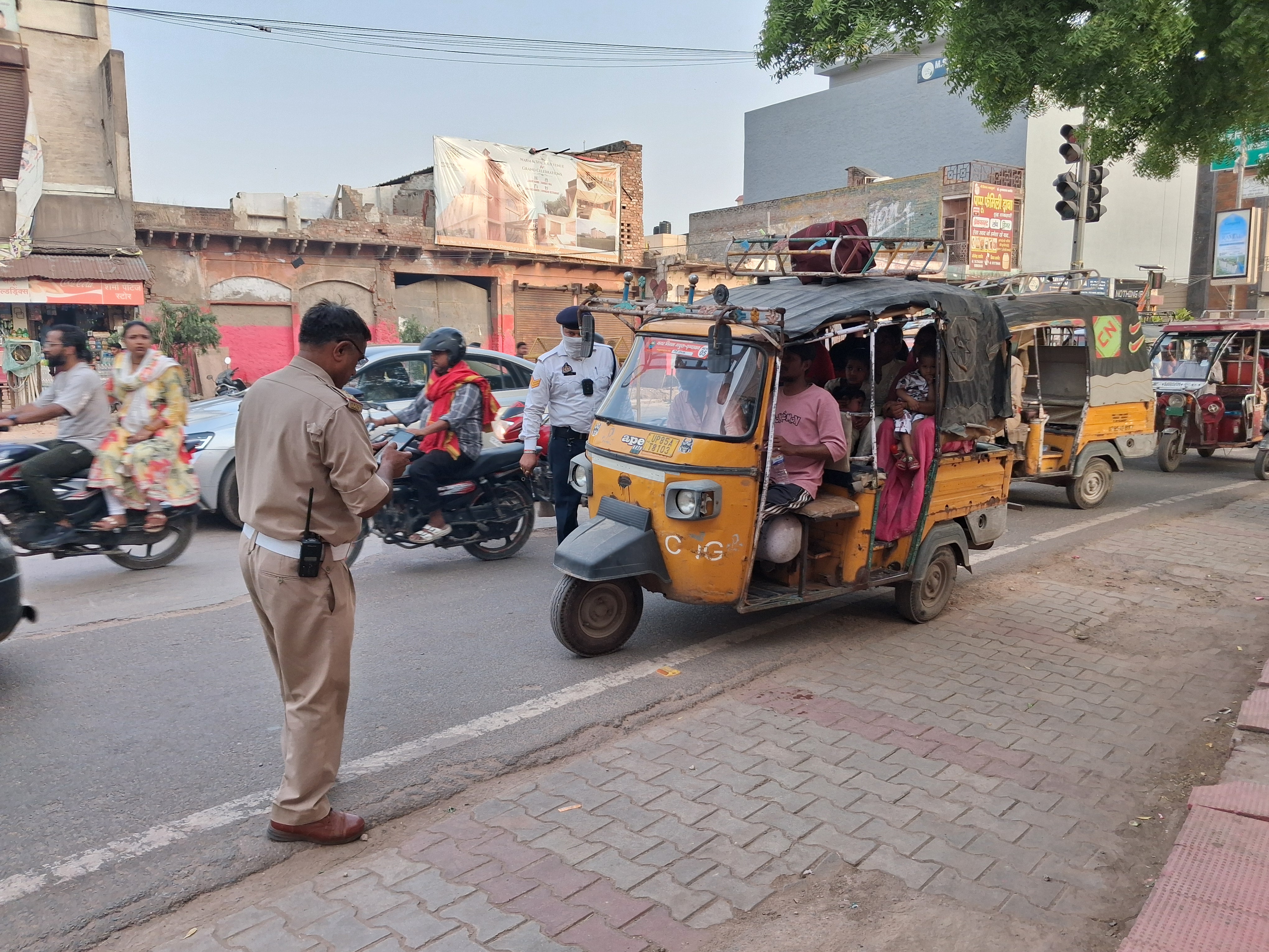 मथुरा। शहर की यातायात व्यवस्था को सुचारु एवं सुरक्षित बनाए रखने के उद्देश्य से मसानी चौराहा पर उप निरीक्षक रमेश चंद एवं कौशल किशोर ने पुलिस टीम के साथ विशेष अभियान चलाया। अभियान के दौरान ओवरलोडिंग कर संचालित हो रहे टेंपो वाहनों की जांच कर चालान किए गए तथा नियमों का उल्लंघन करने वालों के विरुद्ध कार्रवाई की गई।