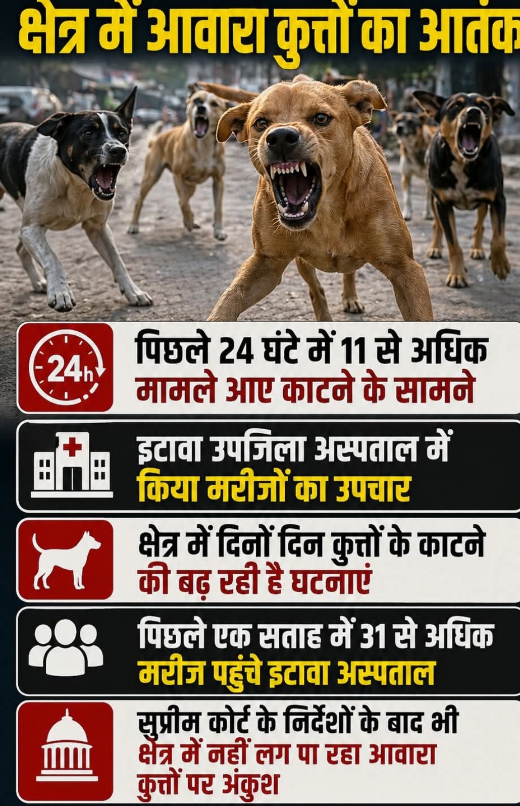 आवारा कुत्तों का आतंक सुप्रीम कोर्ट के आदेश की हो रही है अवहेलना