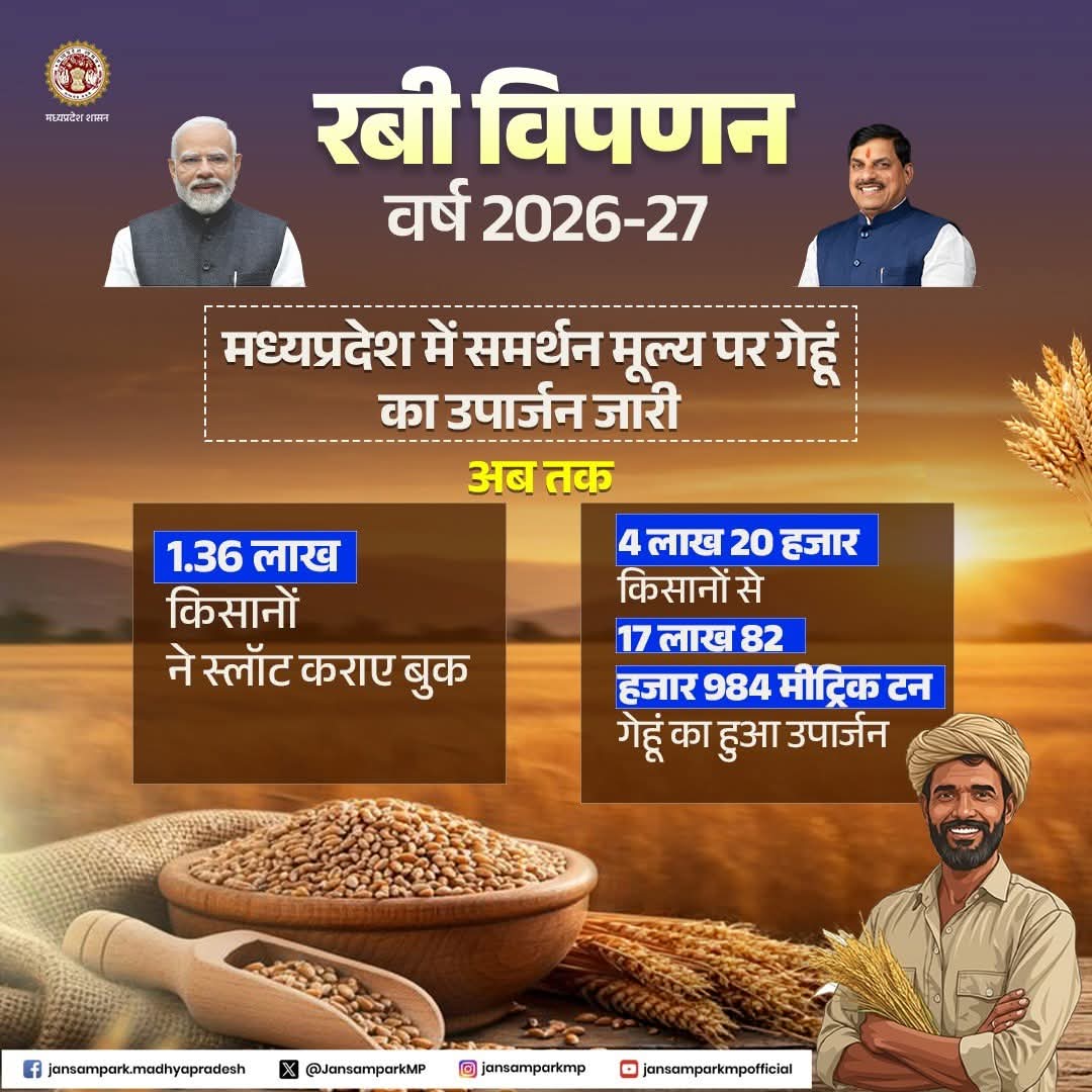 #मध्यप्रदेश में समर्थन मूल्य पर गेहूं का उपार्जन जारी