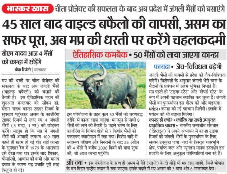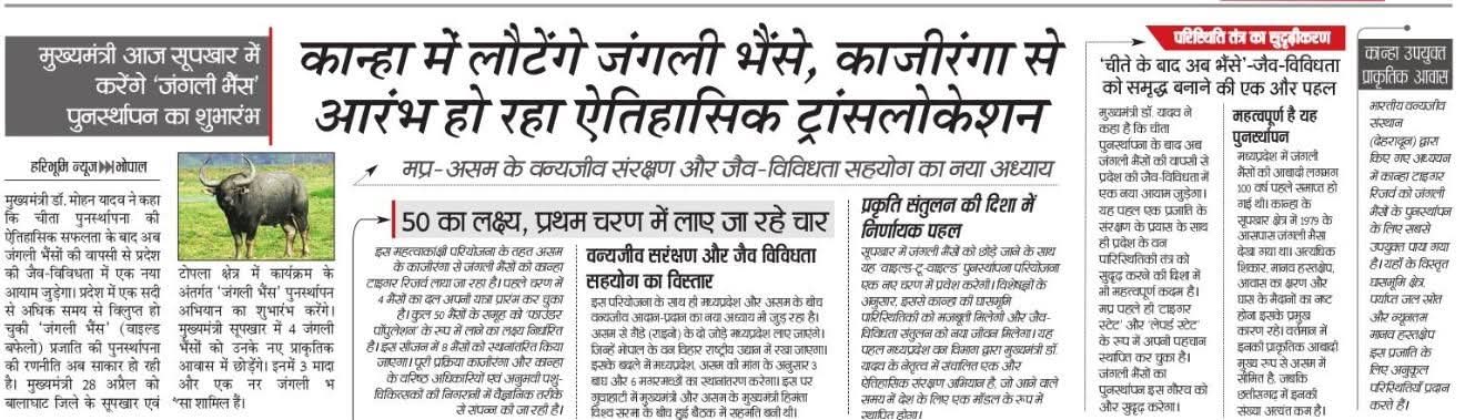 कान्हा में लौटेंगे जंगली भैंसे काजीरंगा से शुरू हो रहा ऐतिहासिक ट्रांसलोकेशन CM Madhya Pradesh Department of Forest, Madhya Pradesh Dainik Bhaskar Haribhoomi #JansamparkMP