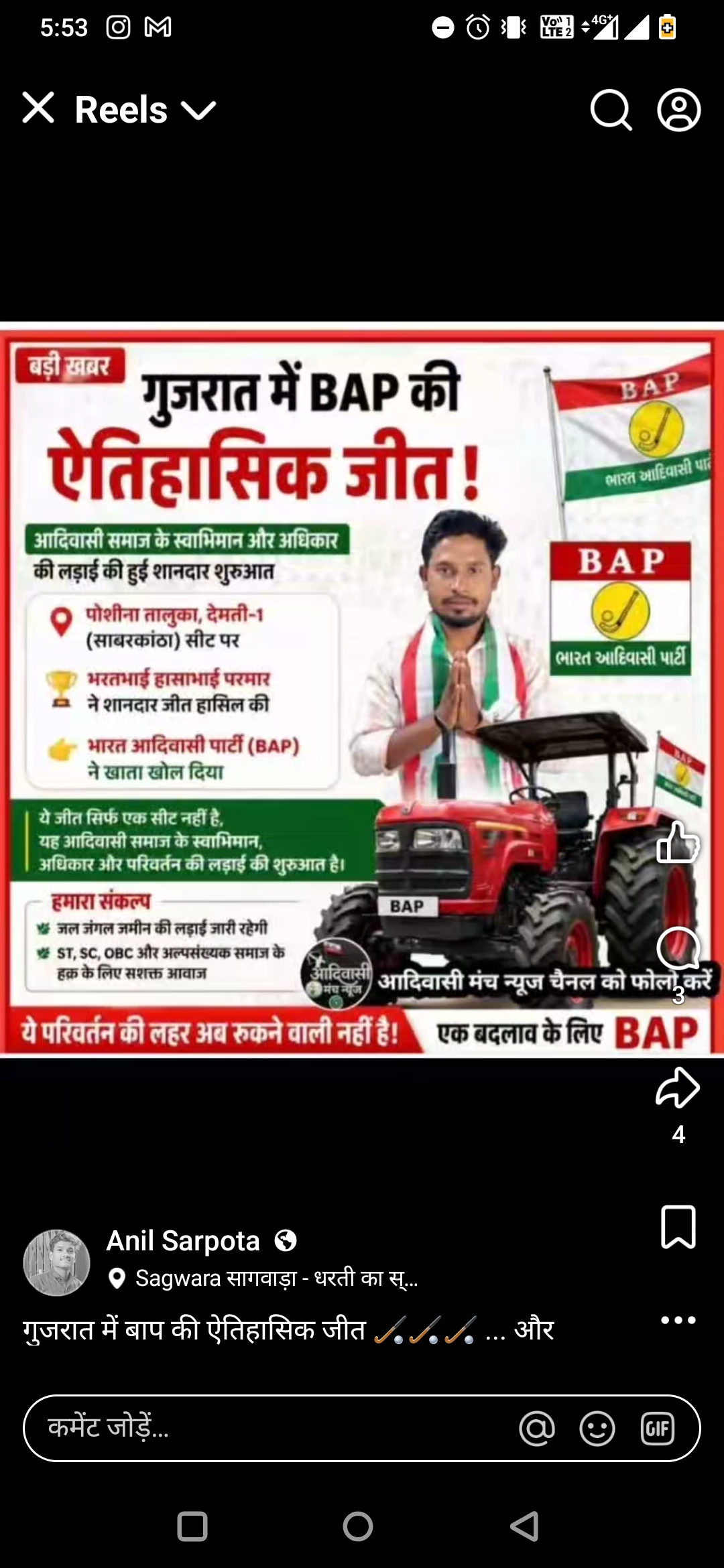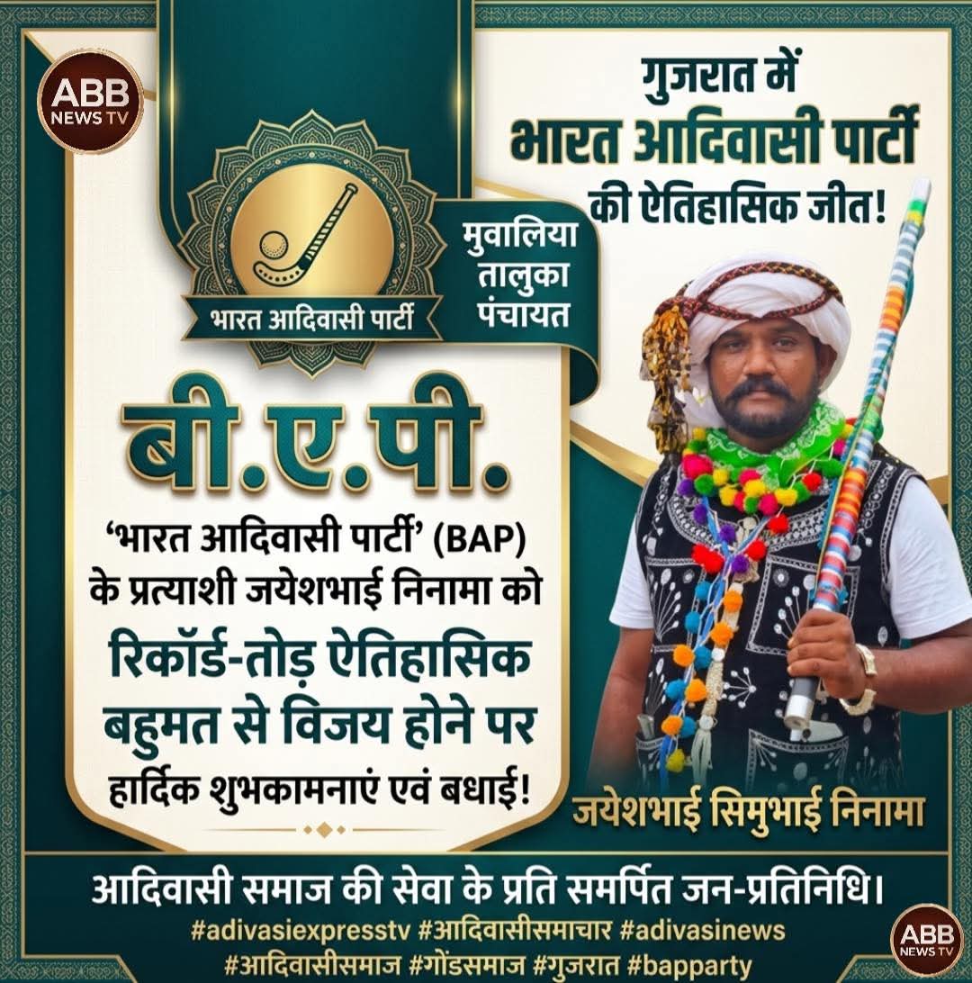 गुजरात में हुए पंचायत इलेक्शन में बाप पार्टी ने ऐतिहासिक जीत को आनेवाला २०२७विधानसभा को मजबूती और जित हासिल करेगी भारत आदिवासी पार्टी, नतिजा सामने है,