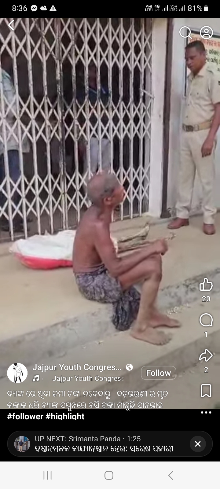 Very pathetic and heartfelt seen in odisha, baleswar distin front of bank