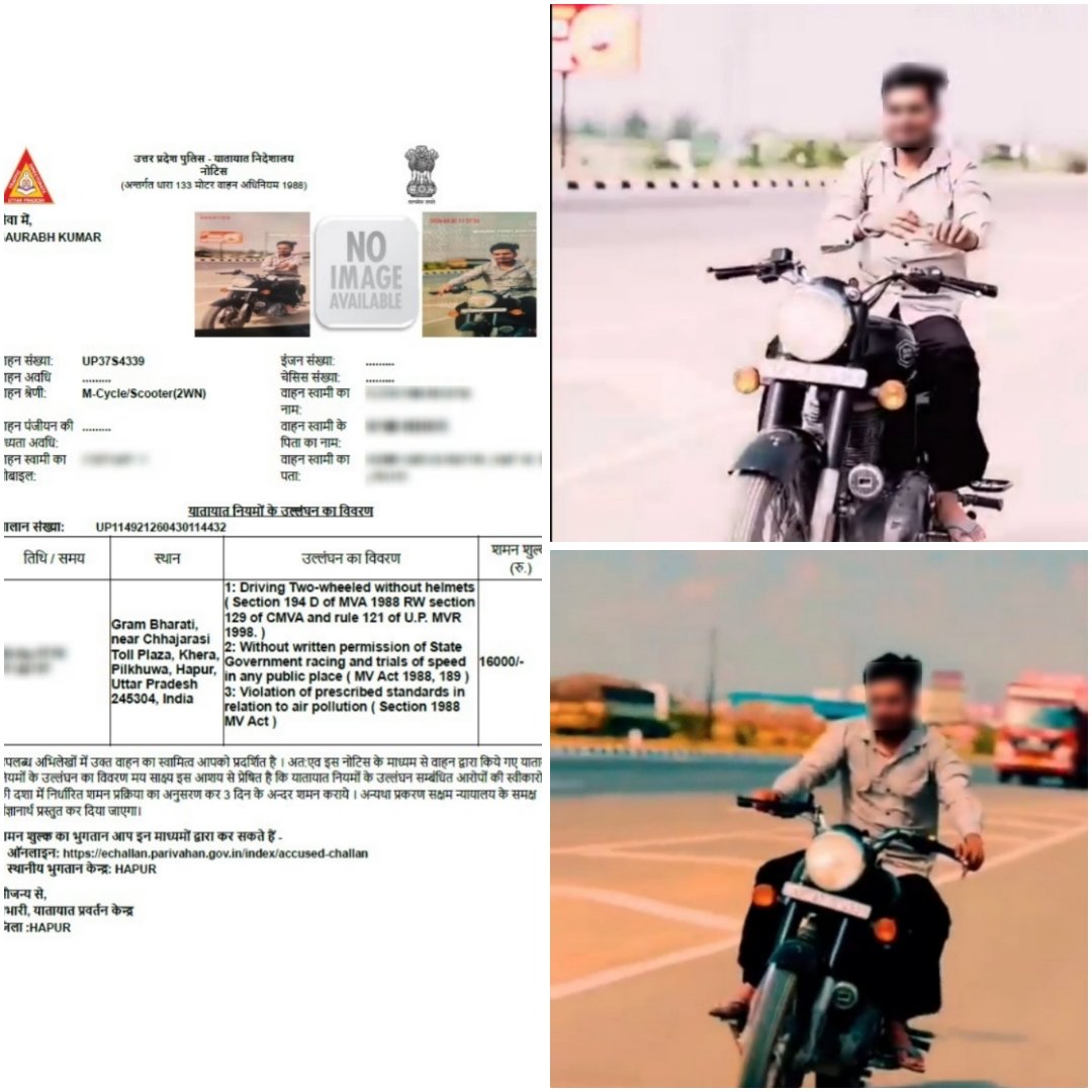 वायरल वीडियो का संज्ञान लेते हुए हापुड़ पुलिस ने तत्परता दिखाते हुए तत्काल कार्रवाई की। यातायात नियमों की अनदेखी करने वाले युवक के खिलाफ मोटर वाहन अधिनियम (एमवी एक्ट) के तहत चालान किया गया। पुलिस द्वारा की गई इस कार्रवाई में संबंधित मोटरसाइकिल का कुल 16,000 रुपये का चालान काटा गया है।