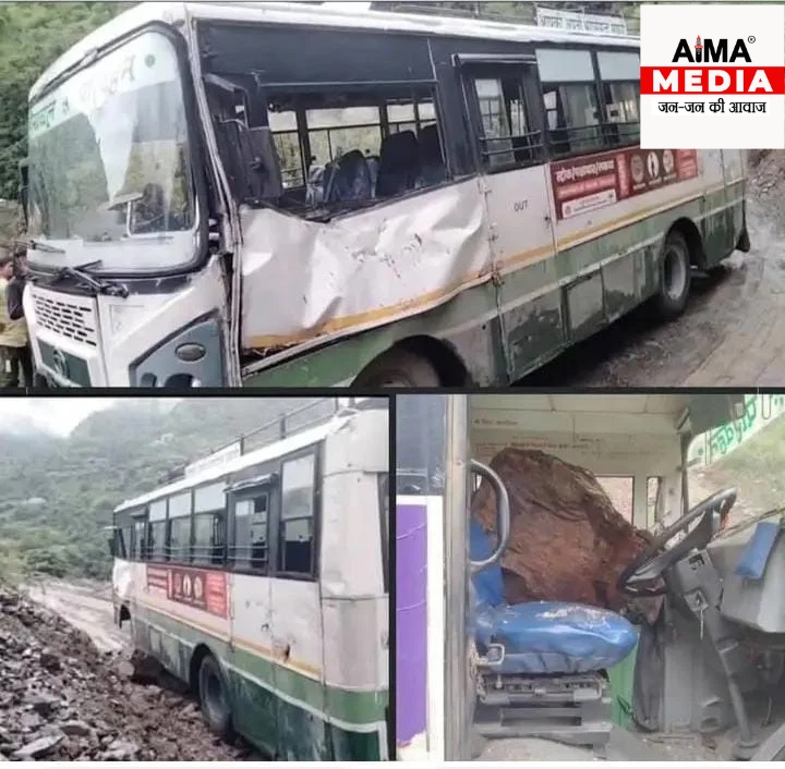 सिरमौर नेरीपुल से गिरीपुल के मध्य नेरीपुल के समीप बगैरना में HRTC बस पर गिरा पत्थर, तीन लोगों को आई चोटें बाकी सभी सवारियां सुरक्षित।