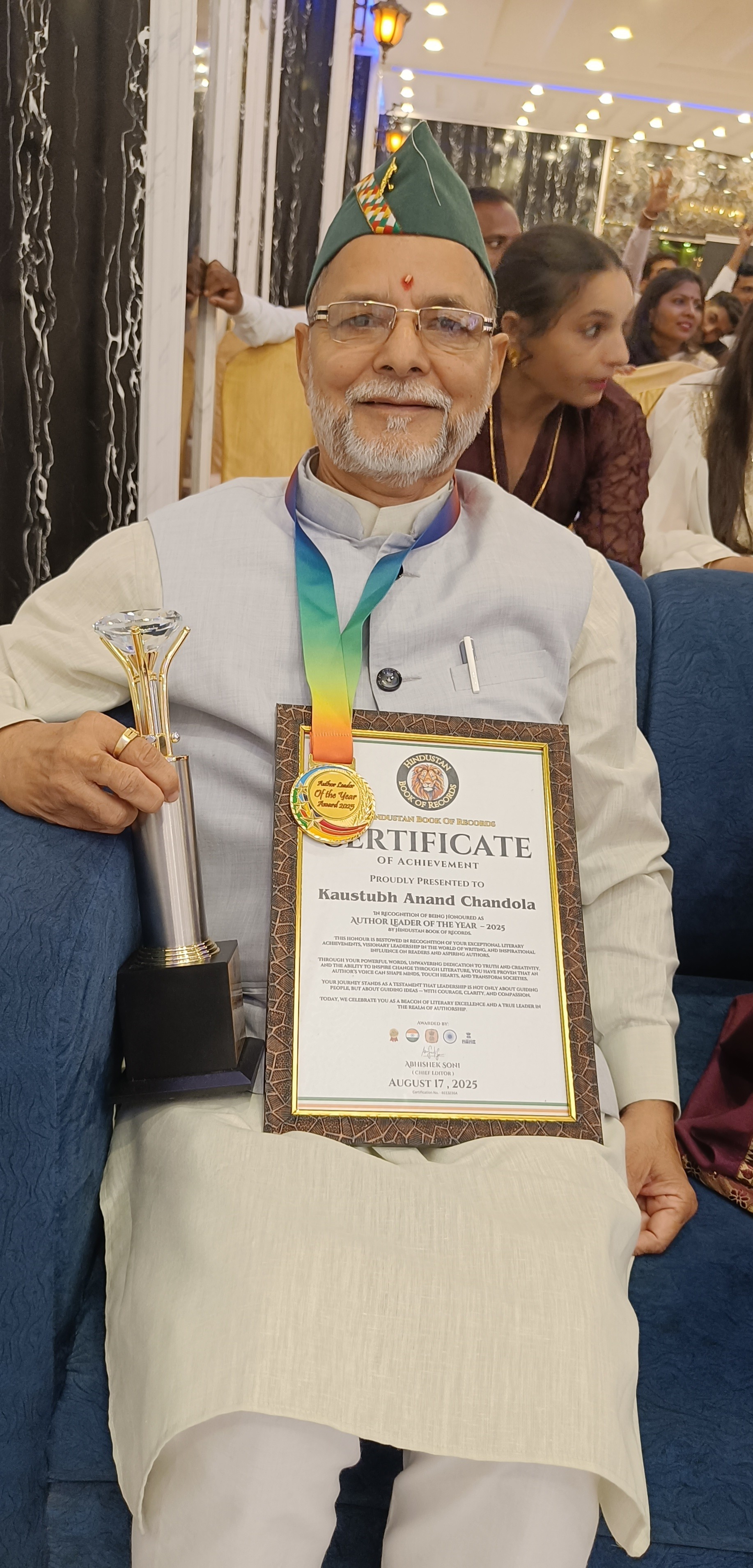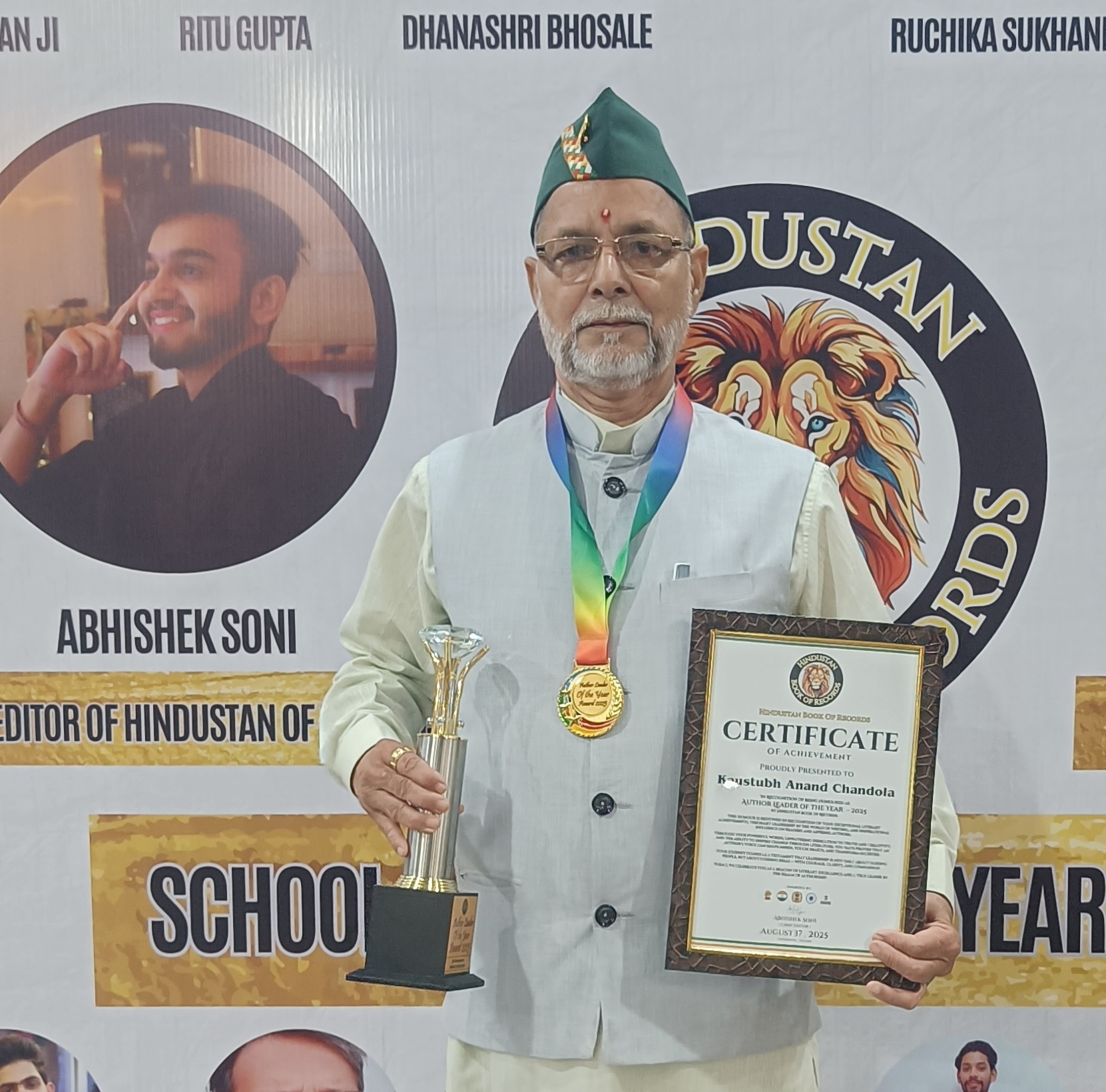लखनऊ शहर के वरिष्ठ साहित्यकार एवं पत्रकार, कौस्तुभ आनंद चंदोला को कल दिनांक 17-08-2025 को जयपुर शहर में 'हिन्दुस्तान बुक्स आफ रिकार्डस्' द्वारा ' एक भव्य समारोह में