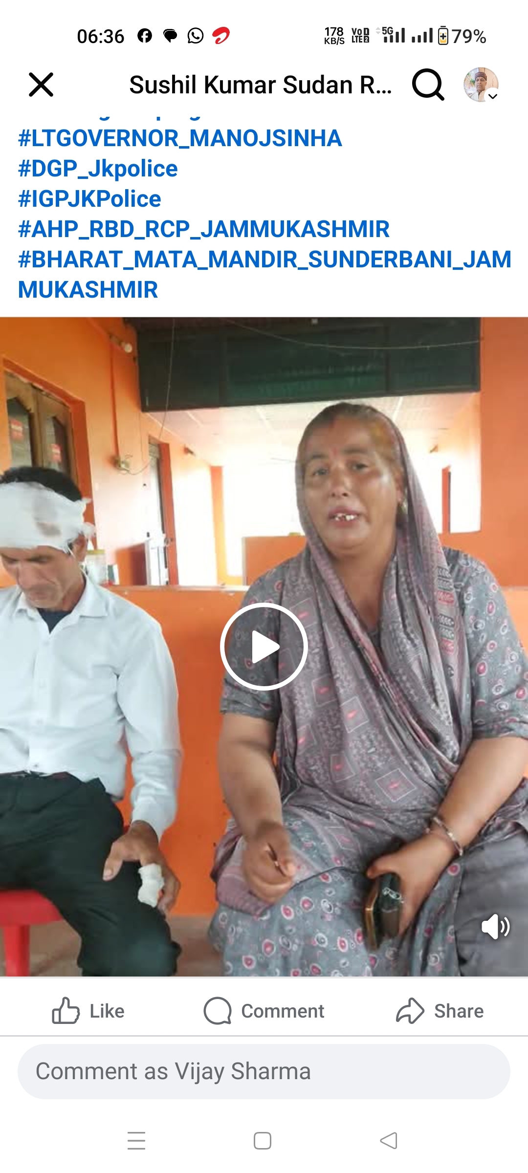 भगवान परशुराम समाज सेवा संगठन, नौशेरा से मिले पीड़ित दंपति श्री जसवंत शर्मा एवं बहन निर्मल कुमारी (निवासी : गाँव राजल, तहसील नौशेरा) ने मीडिया के समक्ष अपनी आपबीती सुनाई।