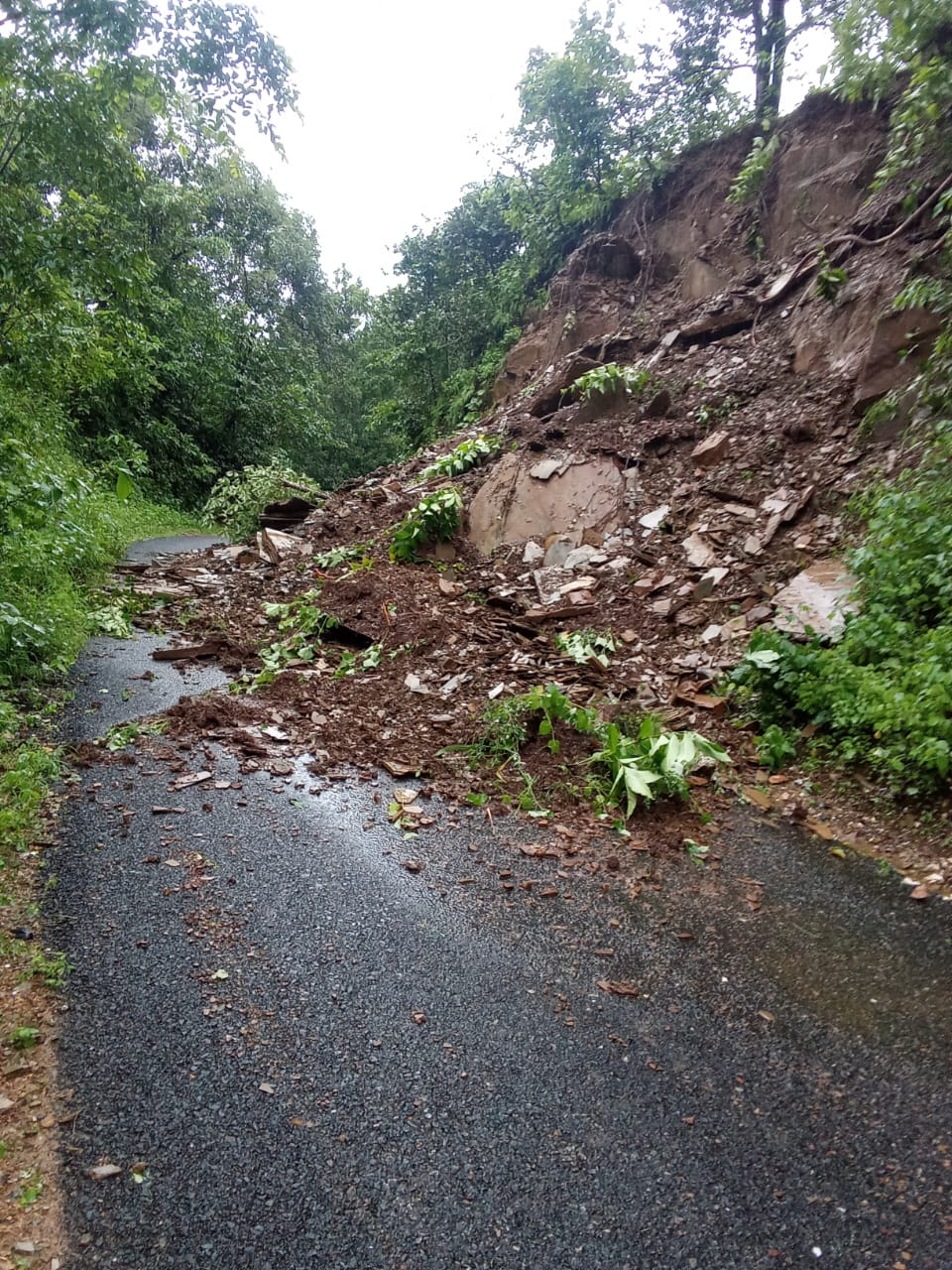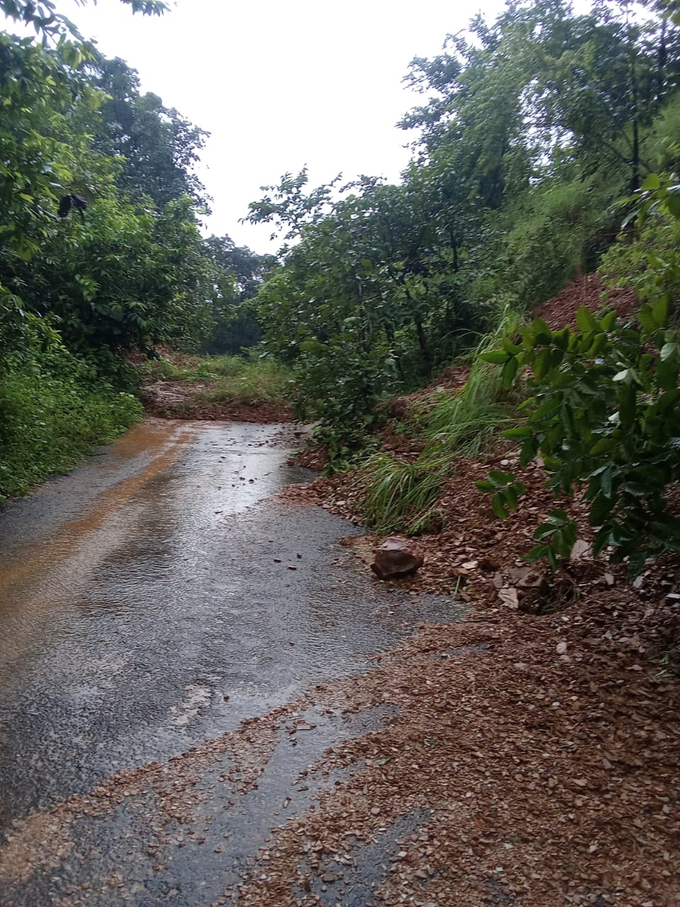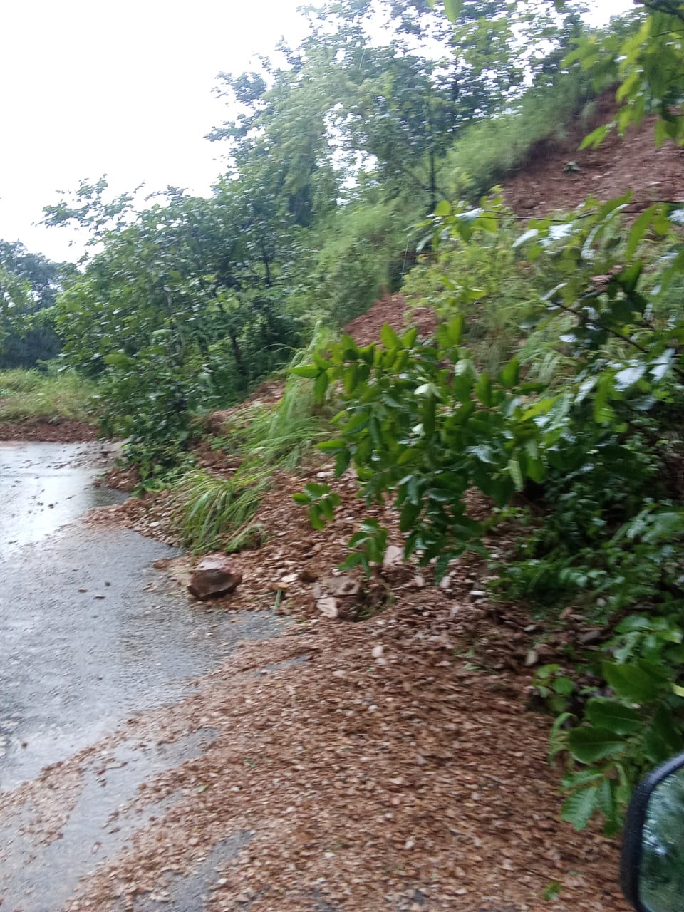 भारी बारिश से नालवा-डैया मार्ग बाधित, मलबा और पेड़ गिरने से यातायात प्रभावित ।