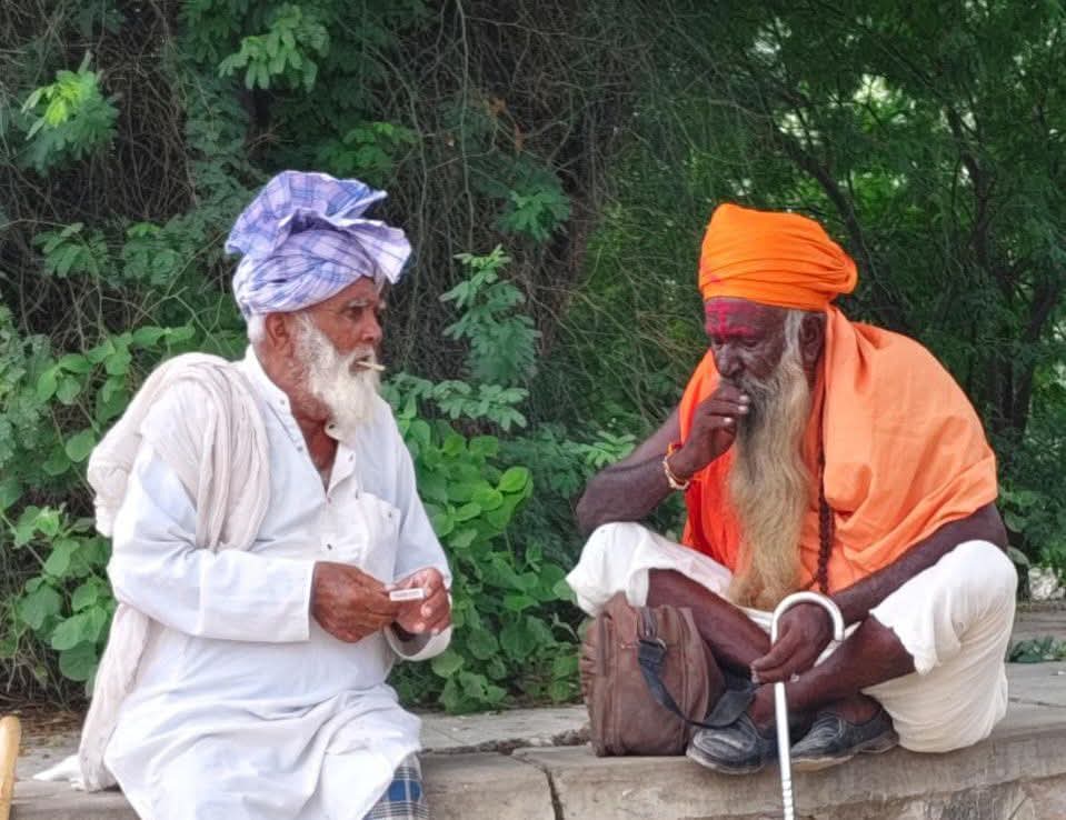 यह तस्वीर राजस्थान के जालौर जिले के एक छोटे से गांव खोखा की है गांव की गंगा-जमुनी तहजीब एक अद्वितीय सांस्कृतिक धरोहर है, जो विभिन्न धर्मों और समुदायों के लोगों के बीच सौहार्द और भाईचारे की भावना को दर्शाती है। यह तहजीब गांवों में रहने वाले लोगों के दैनिक जीवन में दिखाई देती है, जहां वे एक दूसरे के साथ मिल-जुलकर रहते हैं और एक दूसरे की मदद करते हैं। यहां तक इस तस्वीर में दर्शाया गया है के एक ही तिल्ली से दो बीड़ी को जला रहे