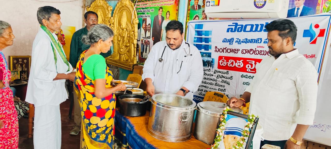 సత్తెనపల్లి పట్టణంలోని మాతృశ్రీ మొల్లమాంబ వయోవృద్ధాశ్రయంలో మదర్ థెరిస్సా 115వ జయంతి సందర్భంగా సాయికృష్ణ మల్టీస్పెషాలిటీ హాస్పిటల్స్ మరియు సింగరాజు చారిటబుల్ ట్రస్ట్ సంయుక్త ఆధ్వర్యంలో ఉచిత వైద్య శిబిరం నిర్వహించారు. ఈ కార్యక్రమంలో డా. సింగరాజు సాయికృష్ణ మదర్ థెరిస్సా చిత్రపటానికి నివాళులర్పించి, ఆమె సేవాభావాన్ని స్ఫూర్తిగా తీసుకొని పేదలకు సహాయం చేయాలని పిలుపునిచ్చారు. శిబిరంలో వృద్ధాశ్రయ నివాసితులకు వైద్య పరీక్షలు, మందులు అందించారు. భవిష్యత్తులో కూడా వైద్య సహాయం అందిస్తామని డా. సాయికృష్ణ హామీ ఇచ్చారు. అనంతరం వయోవృద్ధులకు భోజనం ఏర్పాటు చేశారు.