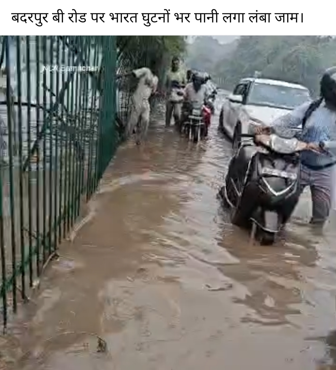 दिल्ली के बदरपुर में आज बारिश के कारण हुआ जल भराव