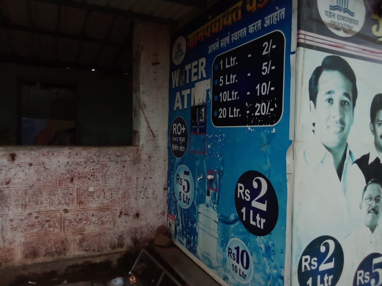देवगड सिंधुदुर्ग , पडेल कँटीन येथे कित्येक वर्ष पाण्याची टाकी दिमाखात उभी आहे , रंगकाम केलेली पोस्टर आहेत , पाण्याच्या एका लिटरला ला किती पडेल , Water ATM असेही लिहिलेले आहे . सर्व माहिती आहे पण पण ..........