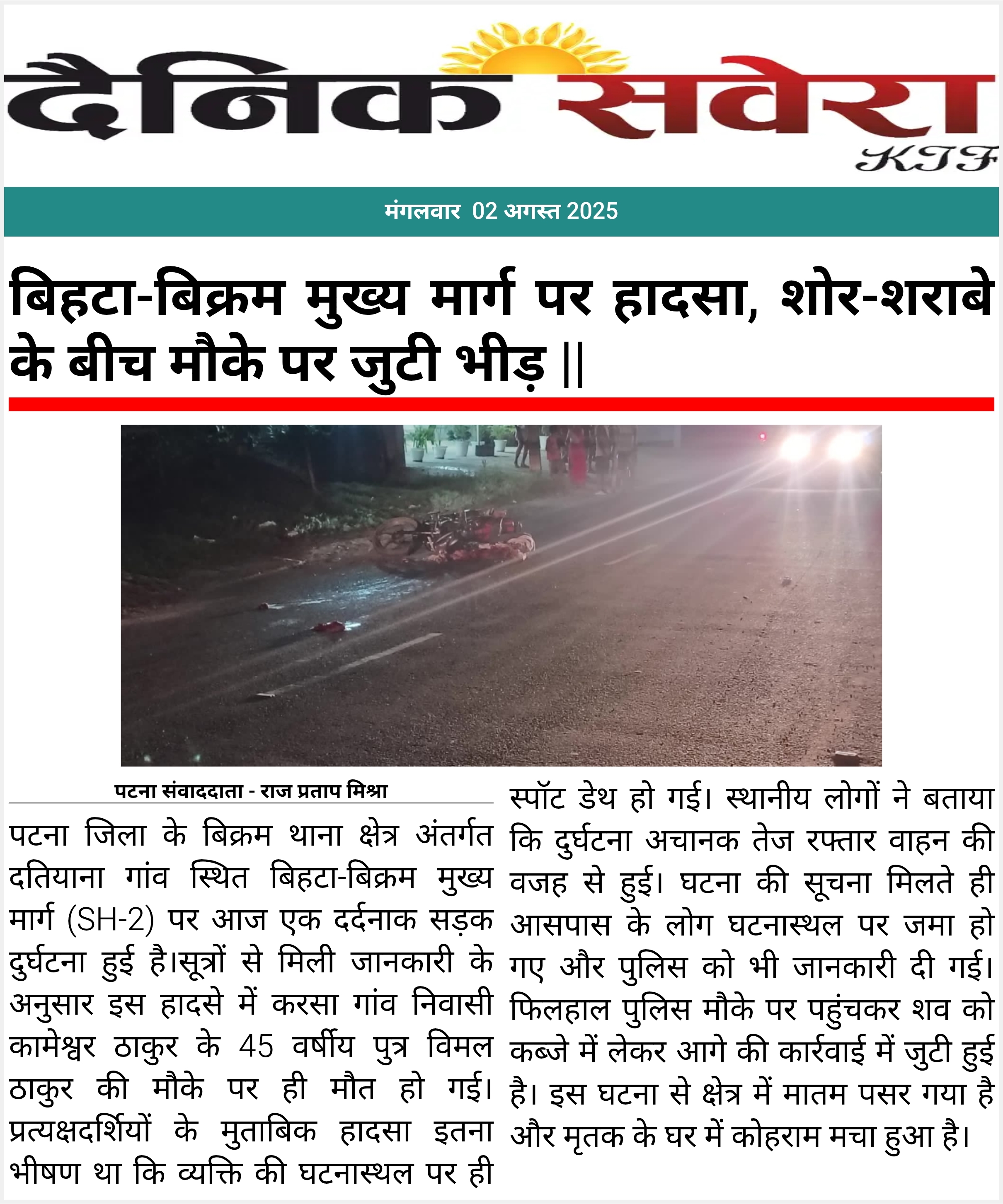 बिहटा-बिक्रम मुख्य मार्ग पर हादसा, शोर-शराबे के बीच मौके पर जुटी भीड़ ||