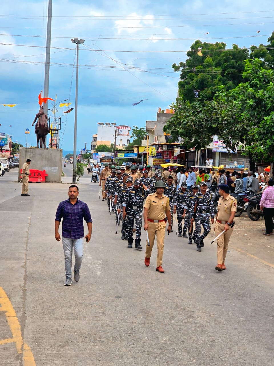 गणेश उत्सव और ईद-ए-मिलाद के मौके पर हसनाबाद शहर में और थाना अंतर्गत आनेवाले राजुर गणपति शहर में पुलिस प्रशासन पूरी तरह सतर्क और मुस्तैद रहा। सुरक्षा की दृष्टि से शहर के अलग-अलग हिस्सों में पुलिस द्वारा पैदल मार्च किया गया, जिससे नागरिकों को सुरक्षा का भरोसा मिले और किसी भी प्रकार की अप्रिय घटना को रोका जा सके। शहर के मुख्य चौक, बाजार और भीड़-भाड़ वाले इलाकों में सख्त निगरानी रखी गई।
