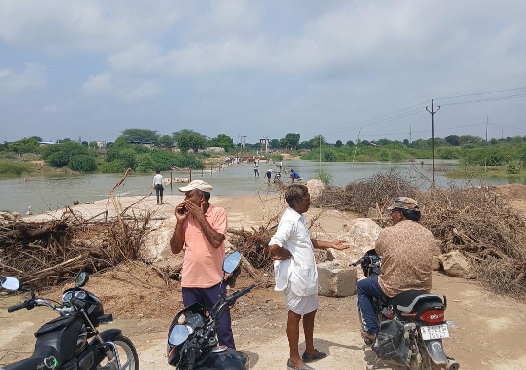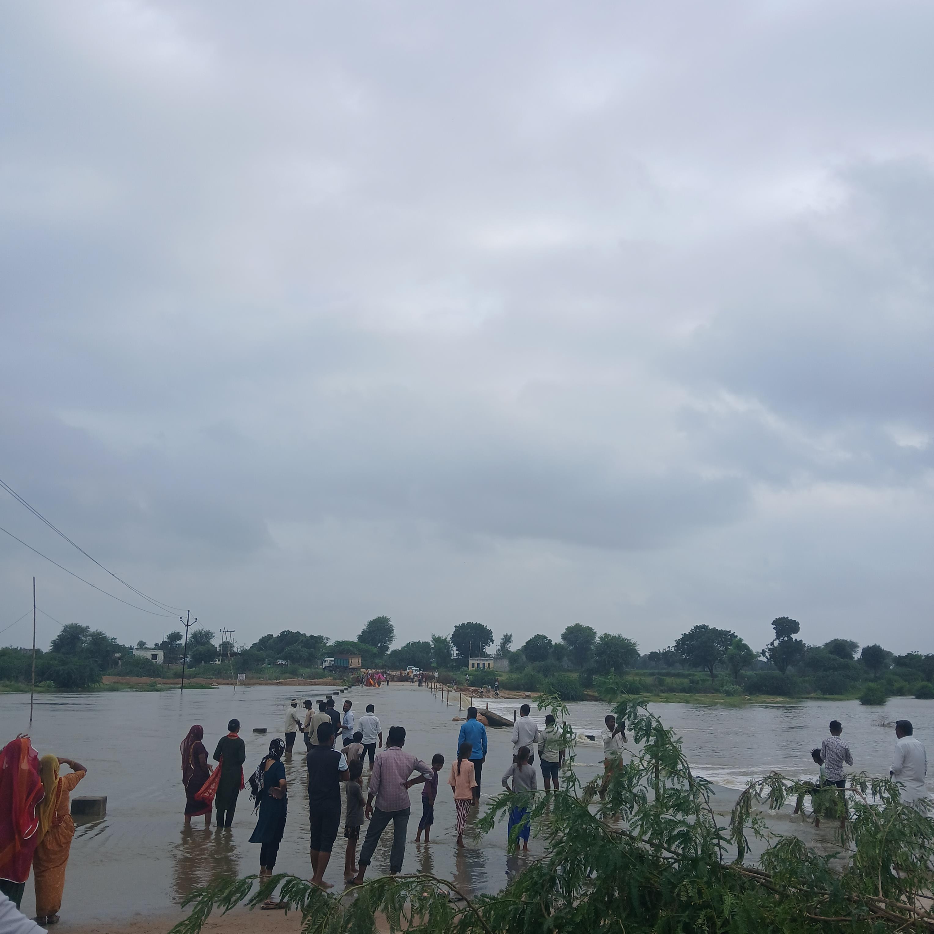 जैतारण निमबोल बारिश व नदी आने के कारण रास्ता बंद 15 किलोमीटर की दुरी पड रही है 60 किलोमीटर 2 घंटे का जादा समय