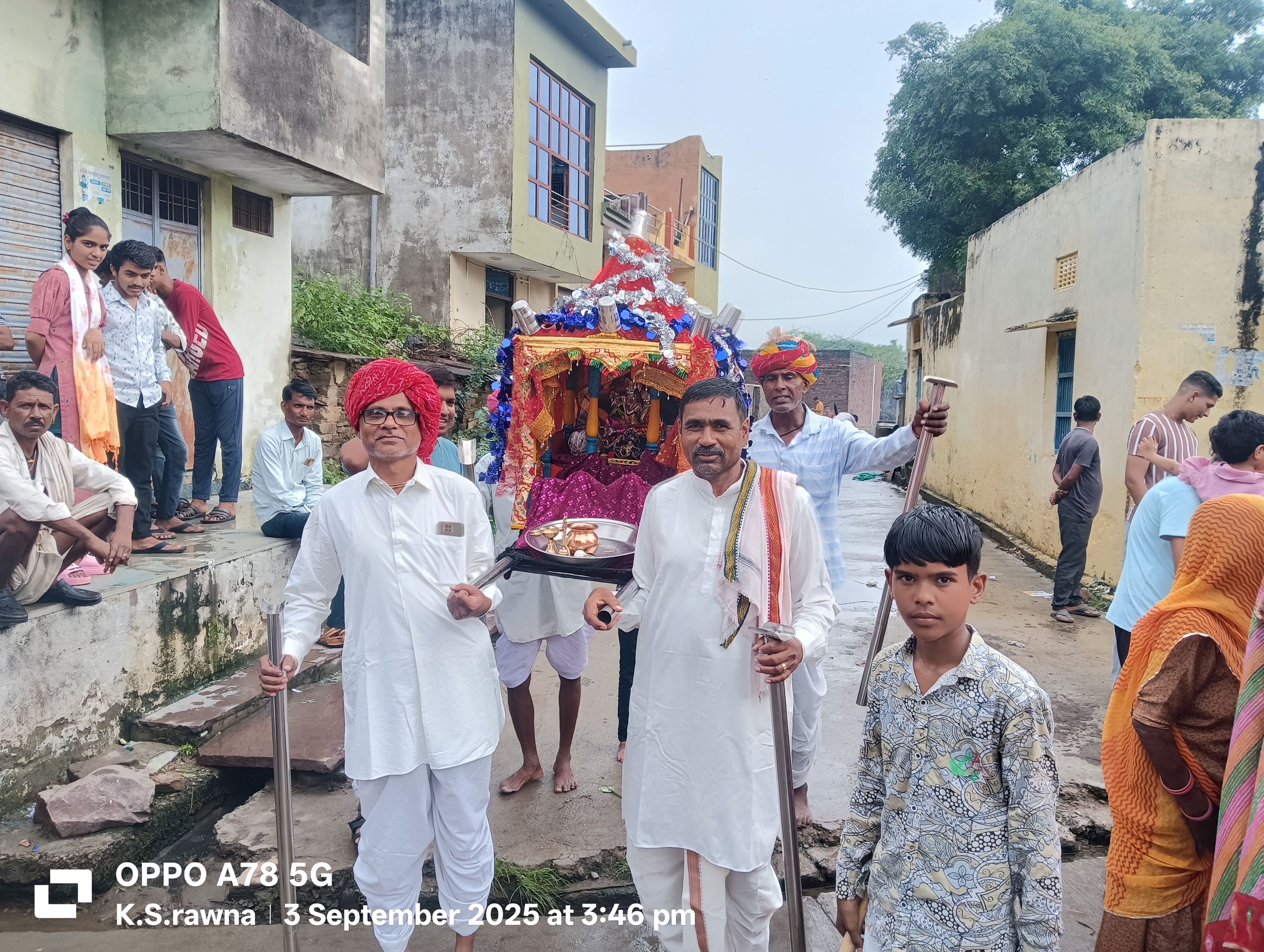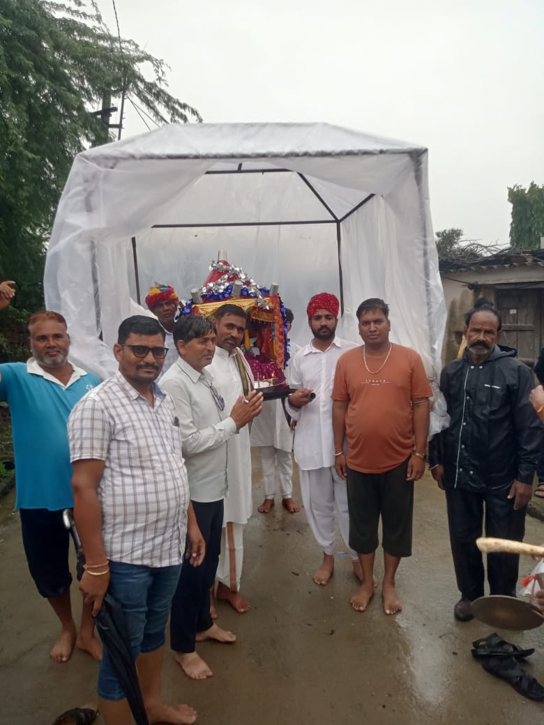 माल का खेड़ा में बुधवार को जलझूलनी एकादशी महोत्सव धूमधाम से मनाया गांव भ्रमण को निकले चारभुजा नाथ जी बरसात में
