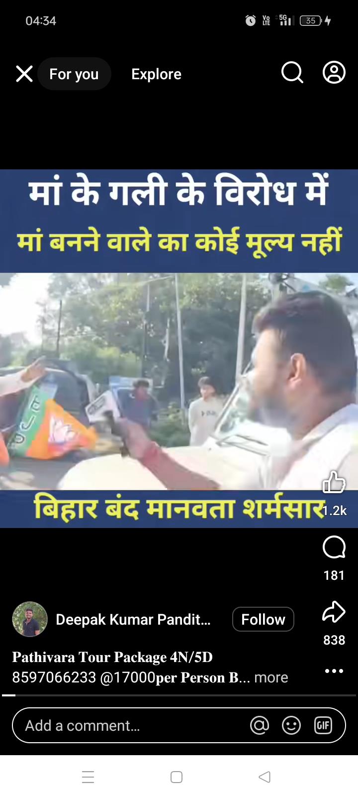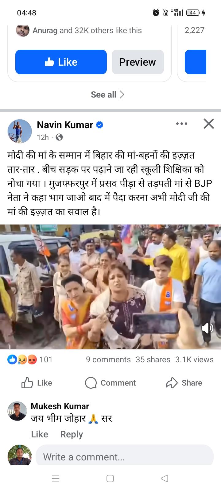 मैं माननीय प्रधानमंत्री जी की स्वर्गीय माता जी को जिसने भी गालियां दीं हैं उसकी मैं कड़ी निन्दा करता हूं और खबरों की मानें तो बिहार पुलिस ने उस व्यक्ति को गिरफ्तार कर लिया है, परन्तु क्या भाजपा पार्टी किसी दूसरे की माता,बहन, पत्नी ,लड़की की इज्जत करती है?मेरा उत्तर है कभी भी नहीं । माननीय प्रधानमंत्री जी ने नेता प्रतिपक्ष राहुल गांधी जी की मां एवं दादी को गालियां दीं तथा बहन को भी गालियां दी गई, भाजपा प्रवक्ता प्रेम शुक्ला जी नम्बर एक के गालिबाज हैं, भाजपा पार्टी के अधिकांश प्रवक्ता,नेता, मंत्री, विधायक, कार्यकर्ता गालिबाज हैं और इसके साथ-साथ अपराधियों के साथ खड़े रहते हैं। लोकसभा चुनाव 2024 के पूर्व में रमेश बिदुड़ी ने दिल्ली में भरी संसद के दौरान दानिश अली को क्या -क्या कहा यह सभी ने देखा, उत्तरप्रदेश के कौशांबी रेप कांड में उप मुख्यमंत्री माननीय ब्रजेश पाठक जी बलात्कारी के साथ खड़े थे,हाथरस की रेप घटना में भी बलात्कारी के साथ खड़े थे, मध्यप्रदेश में भी अनेक नेताओं ने अपनी मर्यादाएं लांघी, मणिपुर में महिलाओं को निर्वस्त्र घुमाया गया,रजद की प्रवक्ता सारिका पासवान को कपड़े उतरवाकर रोड पर घुमाने के लिए कहा एक प्रतिष्ठित चैनल पर यहीं नहीं रुकते रजद की प्रवक्ता कंचना यादव एवं प्रियंका भारतीय को इतनी गन्दी गन्दी गालियां देते हैं कि मैं लिख भी नहीं सकता,बिलकिश बानो के बलात्कारियों को रिहा किया गया और भाजपा पार्टी के लोगों ने मिठाइयां बांटी, बलात्कारी बाबा राम रहीम को परोल पर चुनाव के दौरान छोड़ते हैं,। मध्यप्रदेश के छतरपुर में एक पुजारी ने हाल में 5 साल की बच्ची का बलात्कार किया मध्यप्रदेश में ऐसे अनेक उदाहरण हैं और बिहार एव उत्तर प्रदेश की बहुजन लोक गायिकाओं तथा कवियित्रियों तथा कवियों को बहुत गन्दी गन्दी गालियां देते हैं और जान से मारने एवं बलात्कार करने की भी धमकी देते हैं और कटनी जिले के ढीमरखेड़ा में मुझे खुद भाजपा पार्टी के कुछ कार्यकर्ताओं ने आकर मेरी आफिस में जलील किया यहां तक की एक मूर्ख कार्यकर्ता ने मां बहन की गालियां दीं और जान मारने की धमकी भी दी,जिसको किसी भी धर्म एवं समाज का क ख भी मालूम नहीं है। जनता जान चुकी है जिसका जीता जागता उदाहरण बिहार बंद का फ्लाप होना है,जिसको जनता का कोई समर्थन नहीं मिला,इस बिहार बंद में भी जन सामान्य को बहुत परेशान किया गया और गालियों के साथ साथ मारपीट भी की गई लोगों के साथ। क्या कभी इन घटनाओं के लिए भाजपा पार्टी ने कभी कोई स्थान बंद किया? कभी नहीं। यह सिर्फ एक नाटक है जो राहुल गांधी की आंधी को रोकना चाहते हैं, किन्तु मुझे नहीं लगता की रूकेंगी। यह सारी बातें तमाम पब्लिक डोमेन में है,कहो इतने लिखने पर ही कुछ क्षेत्रीय जातिवादी मानसिक कुप्र