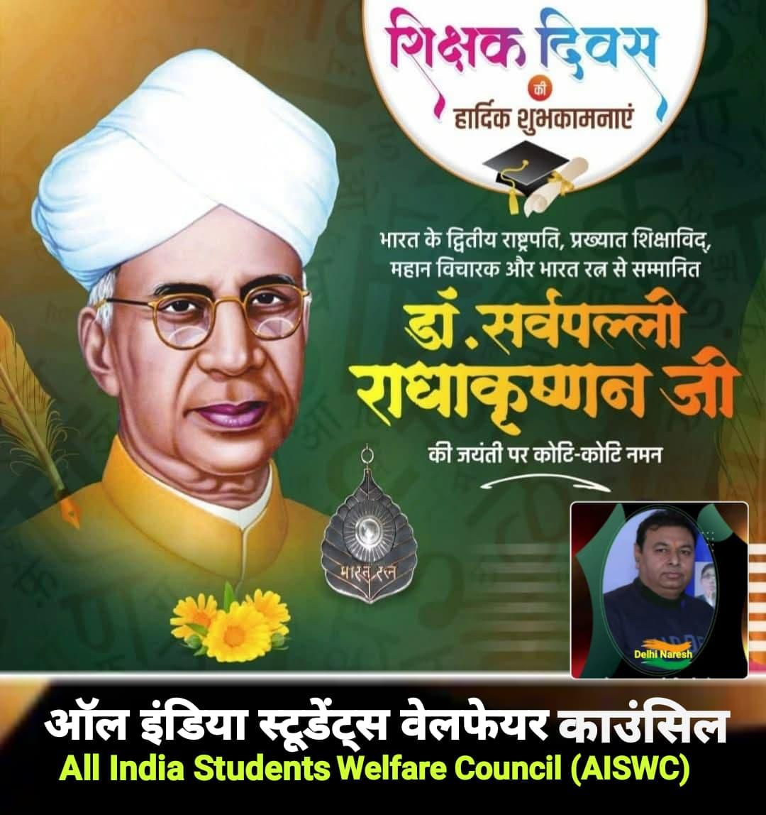 *देश के सभी #अभिभावकों, #शिक्षकों, #शिक्षार्थियो, #शिक्षण_संस्थान_संचालकों और समस्त #शिक्षा_प्रेमियों को "ऑल इंडिया स्टूडेंट्स वेलफेयर काउंसिल" की तरफ से "शिक्षक दिवस" - 2025 की हार्दिक शुभकामनाएं एवं बधाई!*