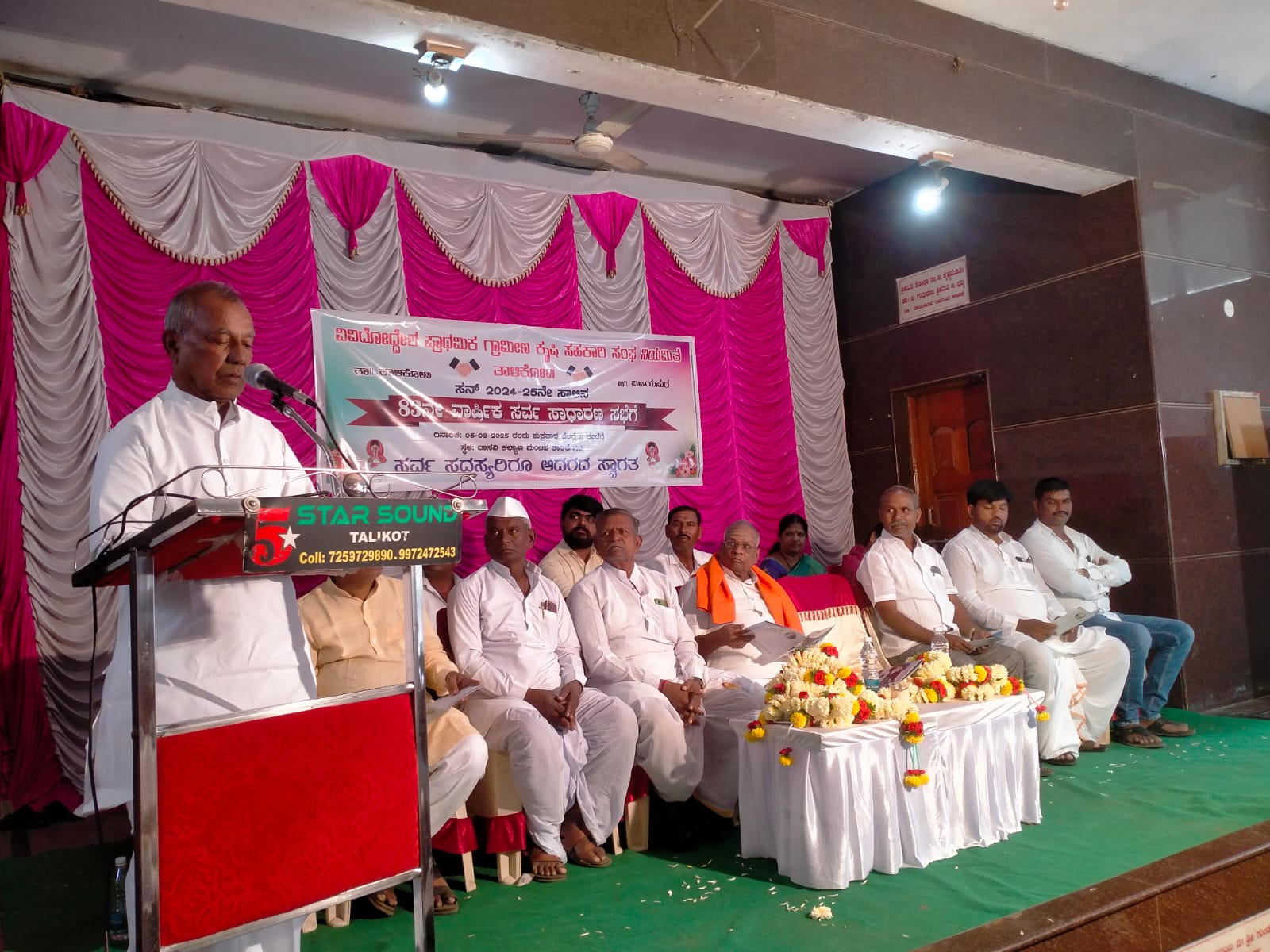 ಪಟ್ಟಣದ ವಾಸವಿ ಕಲ್ಯಾಣ ಮಂಟಪದಲ್ಲಿ ಶುಕ್ರವಾರ ನಡೆದ ತಾಳಿಕೋಟಿ ವಿವಿಧೋದ್ದೇಶ ಪ್ರಾಥಮಿಕ ಗ್ರಾಮೀಣ ಕೃಷಿ ಸಹಕಾರಿ ಸಂಘದ 83ನೇ ವಾರ್ಷಿಕ ಸರ್ವಸಾಧಾರಣ ಸಭೆಯಲ್ಲಿ ಮಾತನಾಡಿದ ಡಿಸಿಸಿ ಬ್ಯಾಂಕ್ ನಿರ್ದೇಶಕ ಬಿ.ಎಸ್. ಪಾಟೀಲ (ಯಾಳಗಿ) ಅವರು, “ಸದಸ್ಯರು ತಮ್ಮ ಸಾಲಗಳನ್ನು ಸಕಾಲಕ್ಕೆ ಮರುಪಾವತಿ ಮಾಡಿದರೆ ಸಹಕಾರಿ ಸಂಘಗಳ ಅಭಿವೃದ್ಧಿಗೆ ದಾರಿ ತೆರೆದುಕೊಳ್ಳುತ್ತದೆ” ಎಂದು ಸಲಹೆ ನೀಡಿದರು.