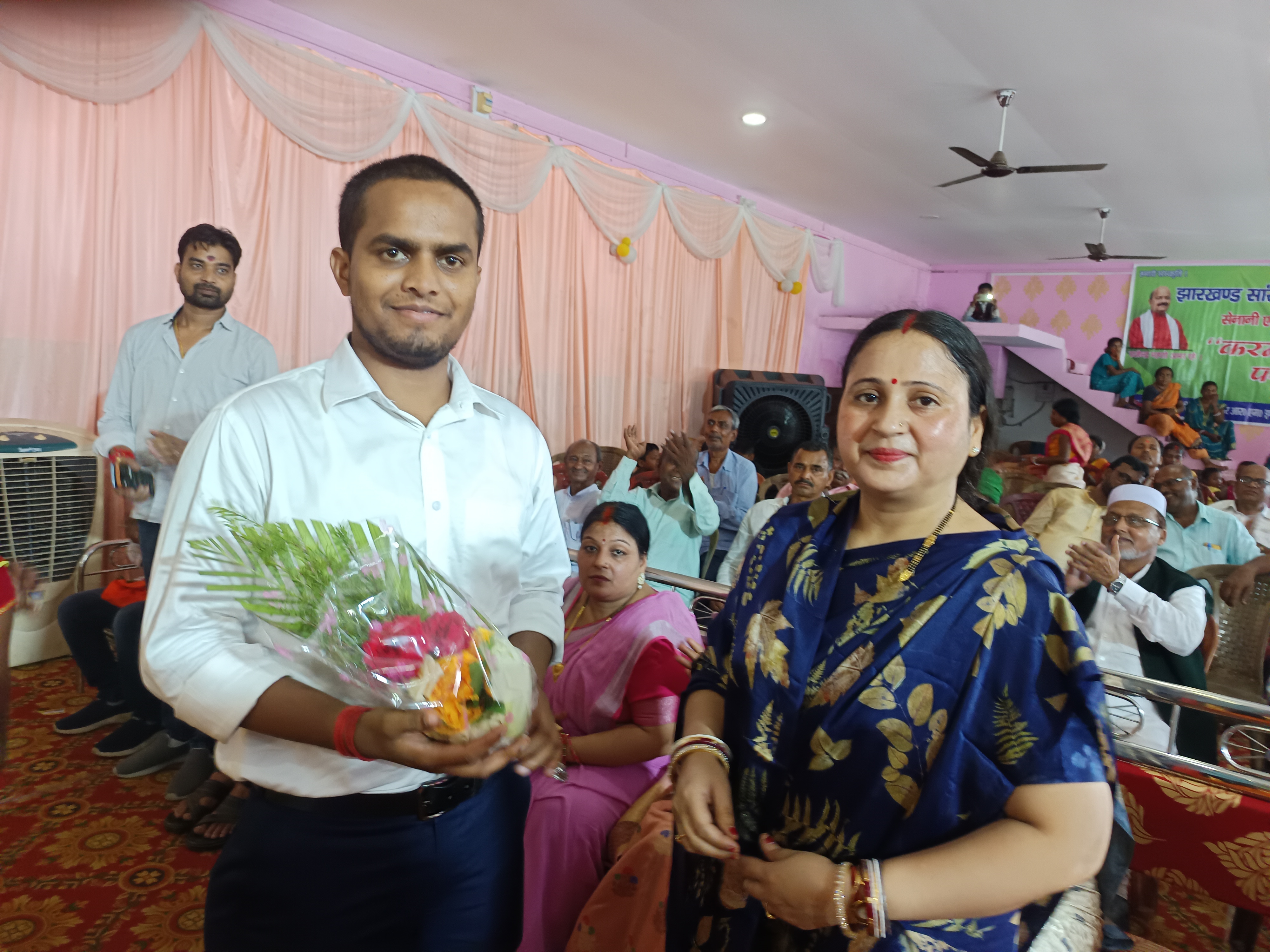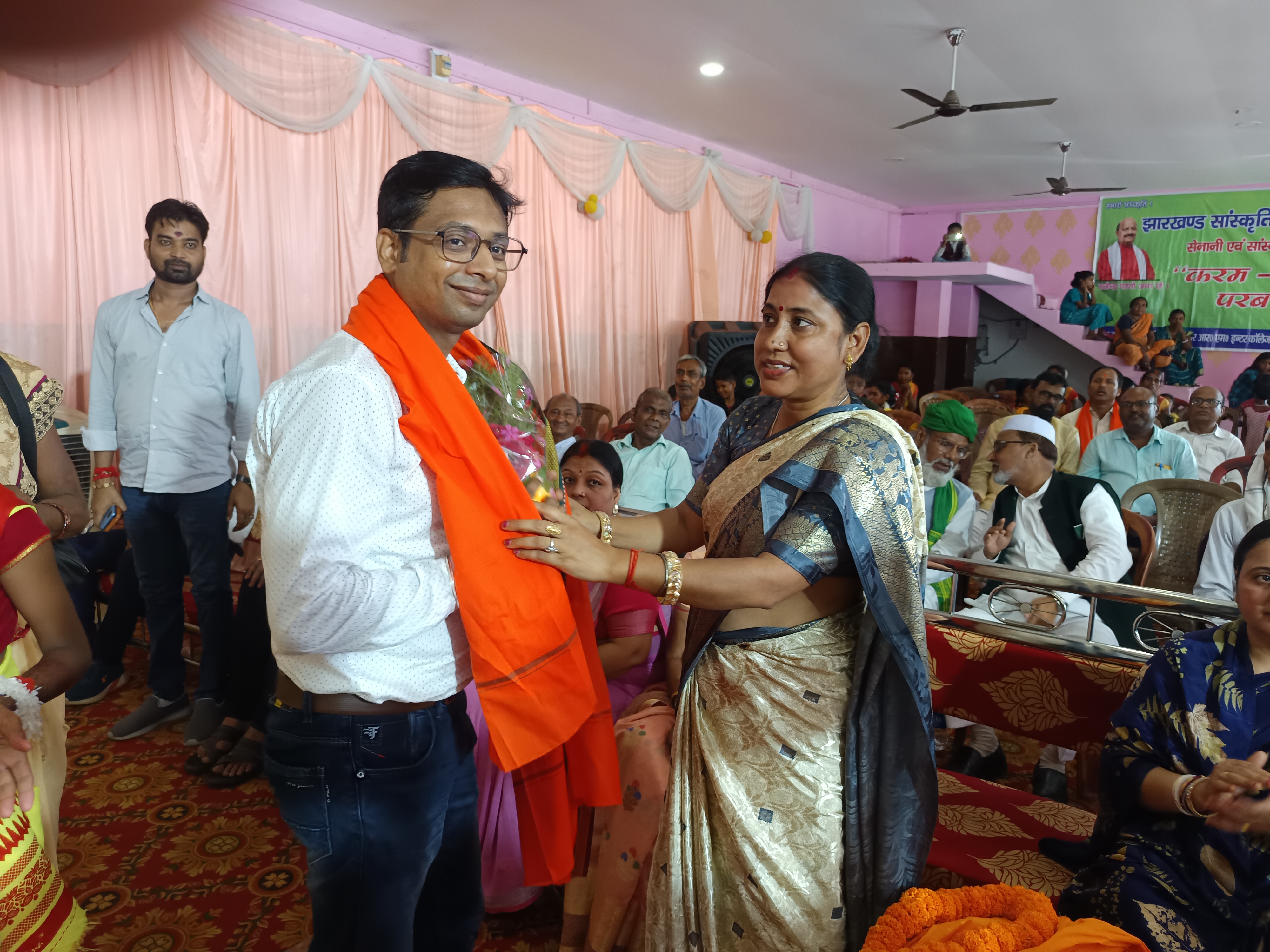आयोजक झारखण्ड सांस्कृतिक म़ंच के कार्यकारी अध्यक्ष श्री विक्रम महतो द्वारा मुख्य अतिथि श्रीमती सावित्री देवी को अंगवस्त्र एवं स्मृति चिन्ह देकर स्वागत एवं सम्मान किया गया।